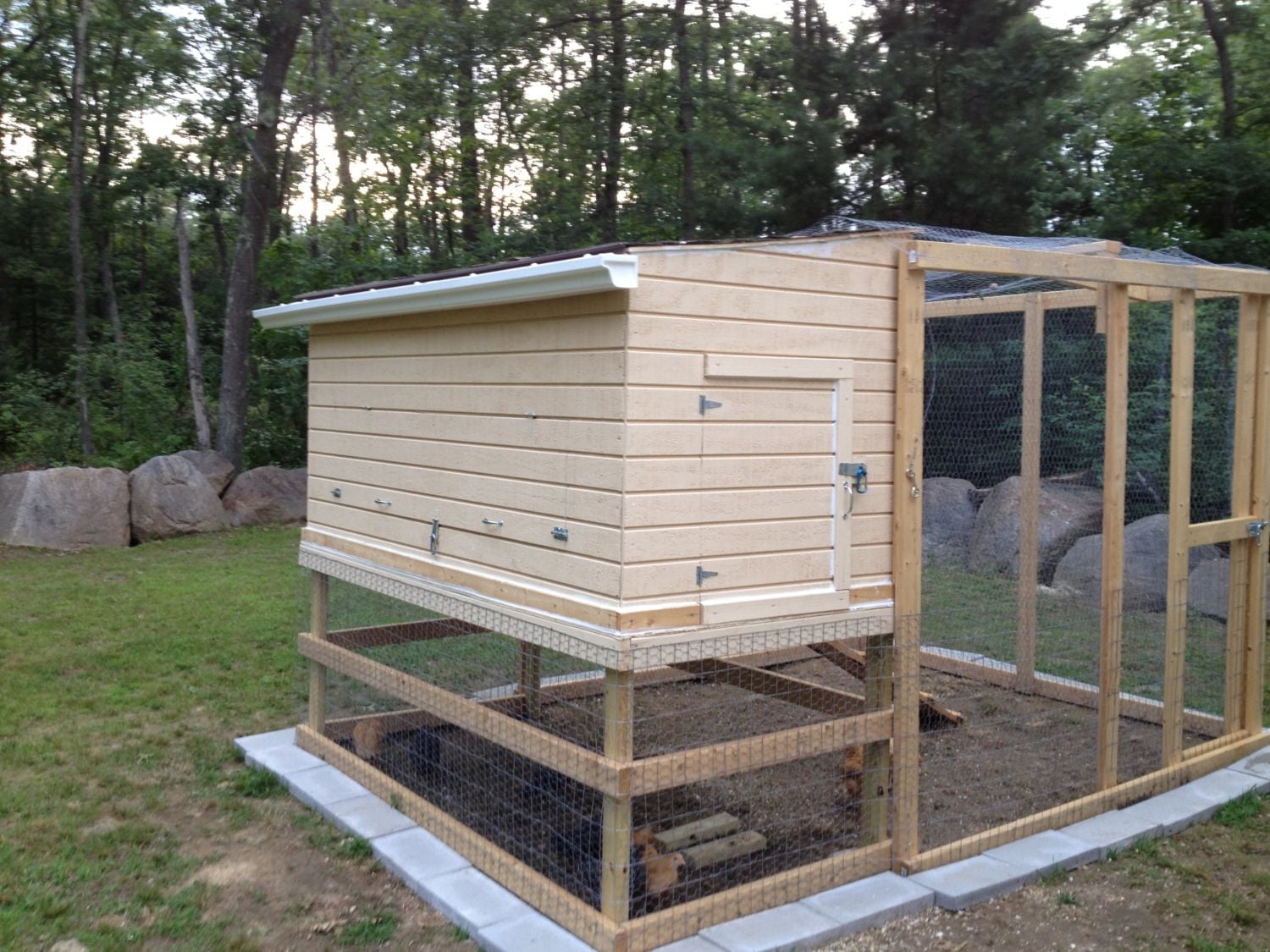 Thank you WalkingOnSunshine. Now I'm think hmmm....more bedding or crawling under that 3'space for insulation. I think I'm gonna add more bedding, stop removing all of it every week, just take out the real gross areas, though I toss it every morning so it's really staying nice and wouldn't the chance of mites be less in the winter? I use pine shavings even in the nesting boxes, was avoiding hay because of mites but I may get a bale just to throw some out for them to play with as they are bored and one bully hen has taken to plucking the Orps this week, nasty little girl. I took the two injured ones out and they were a bloody mess but one already looks like she has little feathers growing in. I also think if we're surrounding that pen area under the coop with a plastic windbreak that should help with the wind not really getting under the floor and cooling it too bad. For venting, should I install some that I can open and close as needed? Here is a pic of the coop, the windows are on the side that faces into the coop. Thanks for the info!