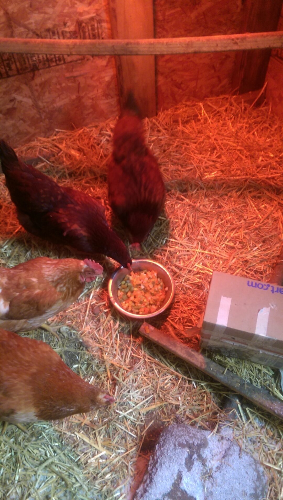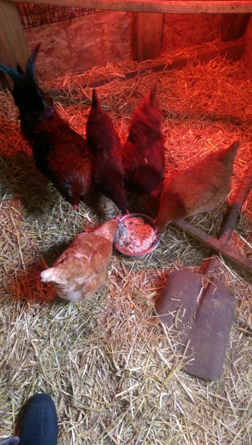 Here in Upstate NY the temperature gets pretty low. Although today isn't too cold only 22°F I pamper my babies. So... I figured I would post some of the stuff I give them each day. Hopefully ya'll can pitch in and I can get a couple new ideas for them.