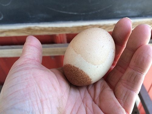 I've been keeping chickens for about 5 years now, but I think this is the craziest egg I've ever collected! Any guesses how it turned out with this pattern? I *think* it's from my welsummer hen who typically lays beautiful fully speckled eggs.