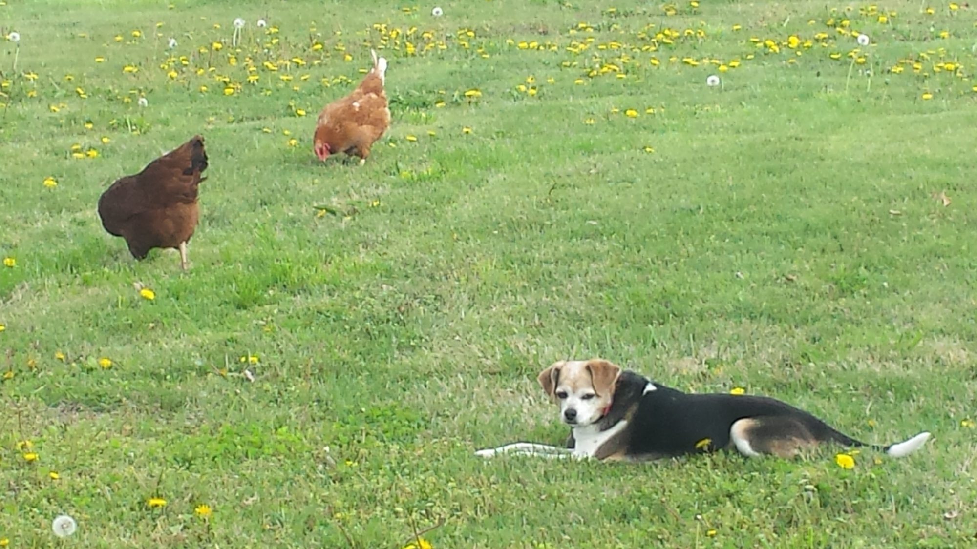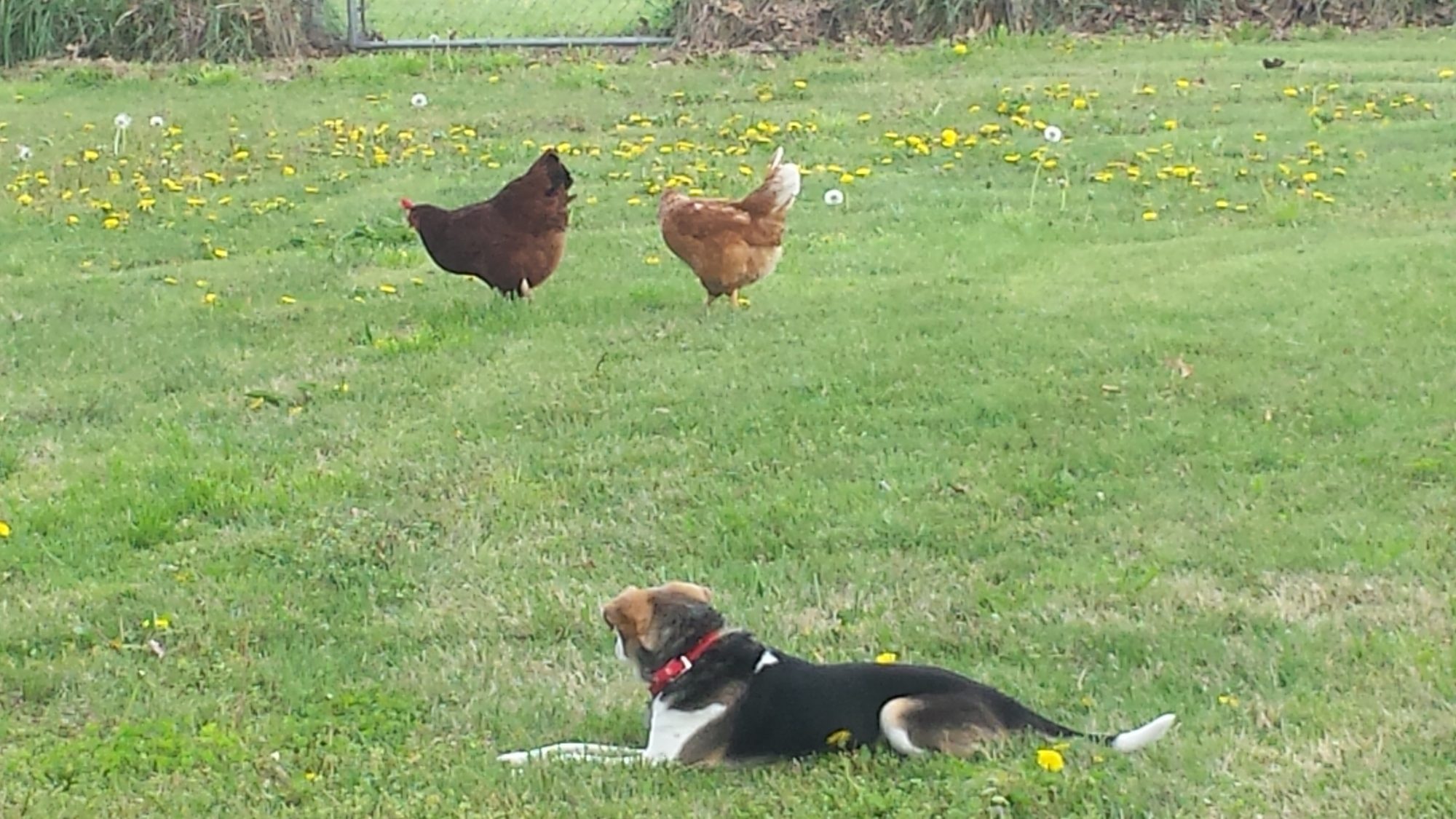 Here's one of my small dogs(Bandito) with a few of my girls.