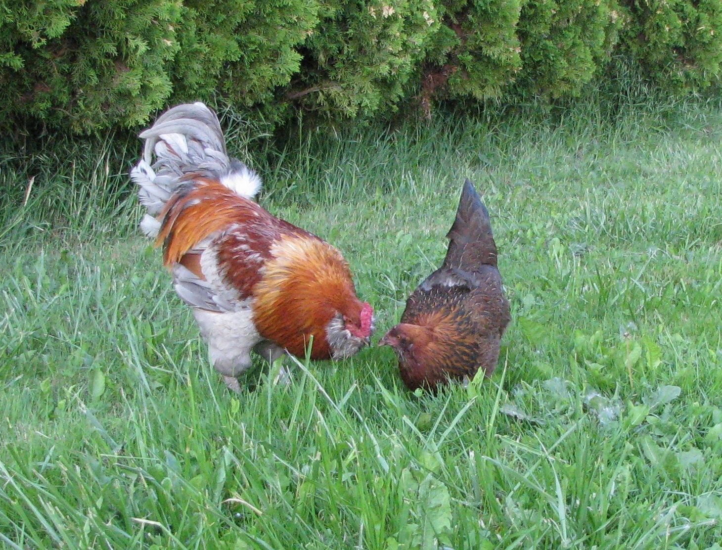 My crazy Quechua hen with her beau.