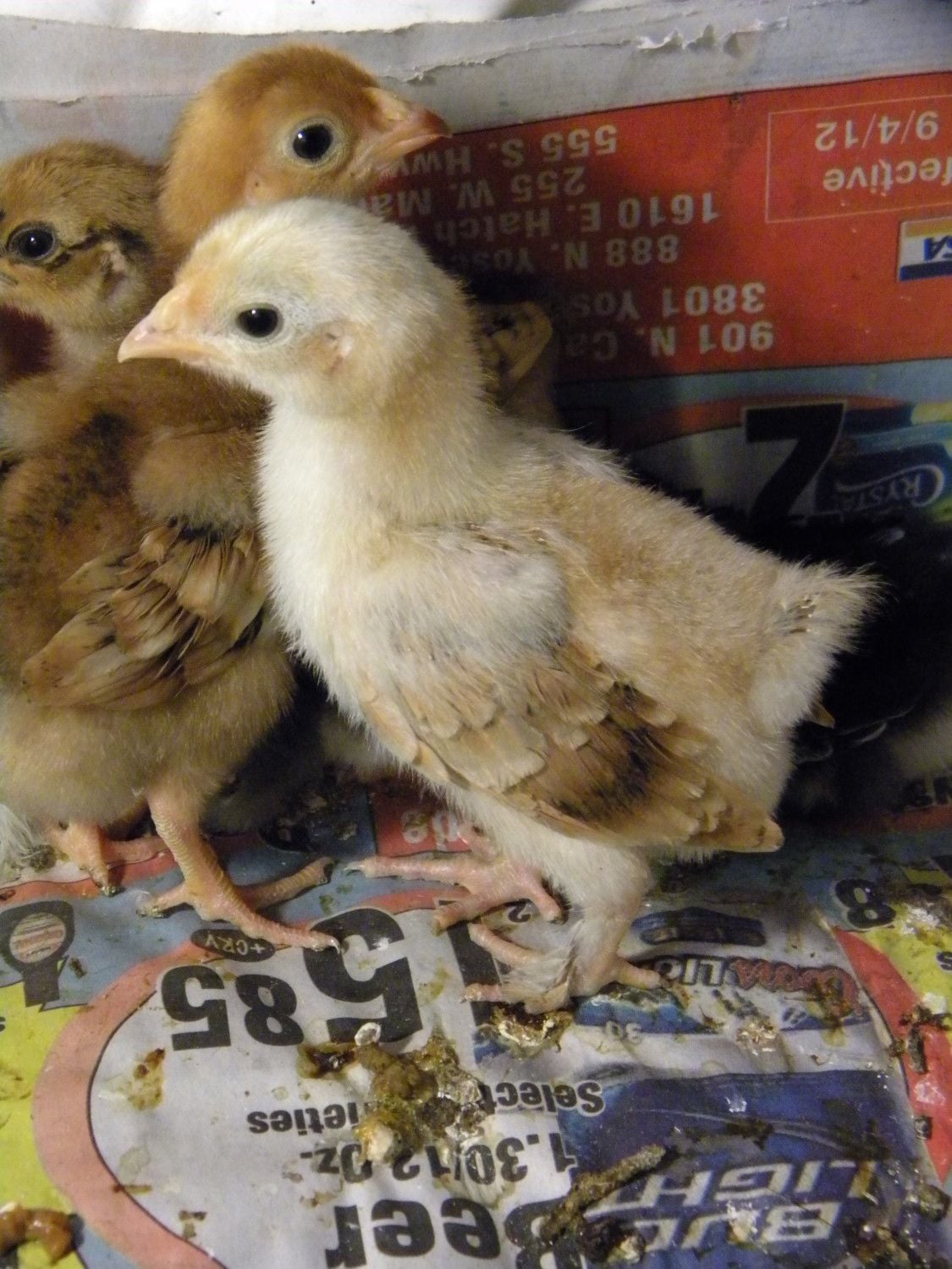 These are some eggs i hatched. All were given to me except for the Chick i think is Buff brahma bantam. .