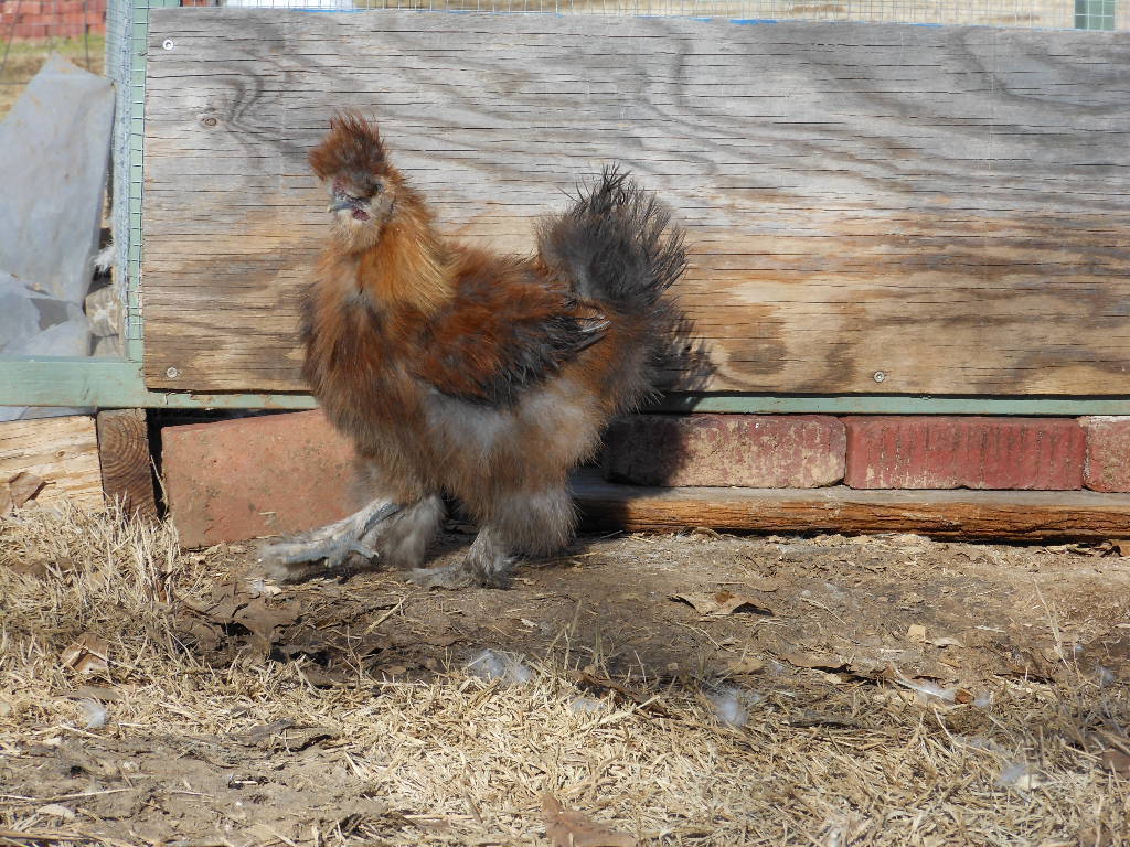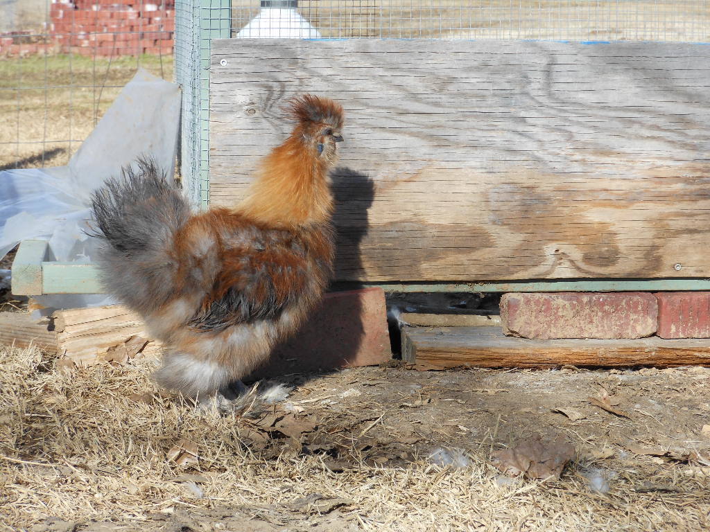 He is a young male that is a pullet-breeder (note the red miscolours in his chest--for exhibition males, he needs a clean black chest), he is NOT an exhibition male but an male that makes exhibition females. I am grasping at straws on how a Partridge male Silkie might look if he was a pullet-breeder...more reds in his colour...not the black chested with reddish highlights I would expect to see in a Partridge male Silkie for exhibition. I would surmise a clean black chest and clean black tail in a male Partridge Silkie if for exhibition would be at the minimum of your expectations.