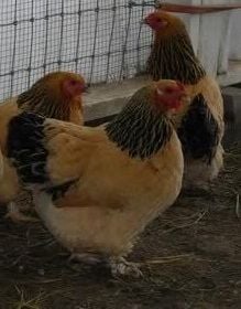 In this variety in the Brahma, Buff (Buff Columbian), we want a contrast to the buff colour and the black in the feathers. The widest "contrast" in colour that is achievable is white and black...sorta the photo negative opposites!