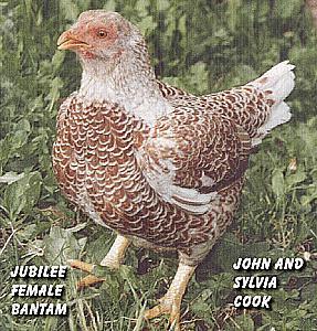 Jubilee is based on dominant white (take a Dark Cornish and by adding one I or sometimes, in theory at least, by adding two blue dilutions as in Splash) and genetically called Double Laced Dominant White. There should be no real black present since dom white (no colour in double dose) and splash (diluter of black) would be expected to somewhat eliminate its expression in the plumage.