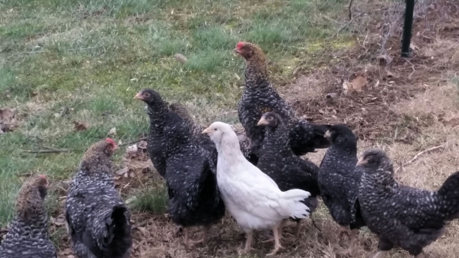 My guess is both parents carry recessive white . Dominant white shows white even with 1 copy . I see no white in the pictures .I had this situation happen a few months ago and posted here. My rooster is a Golden Cuckoo marans, I had 3 easter egger hens (then) and ended up with a white chick. It was suggested the hen was a dominant white. I sold her as I'm breeding golden cuckoo olive eggers. Now I have the rooster and 2 hens that are pictures. I ended up with another white. It's not on the rooster side. As when breeding him with other golden cuckoos and buff orpingtons this hasn't popped up. My other roosters are in separate breeding pens, so no unauthorized breeding.