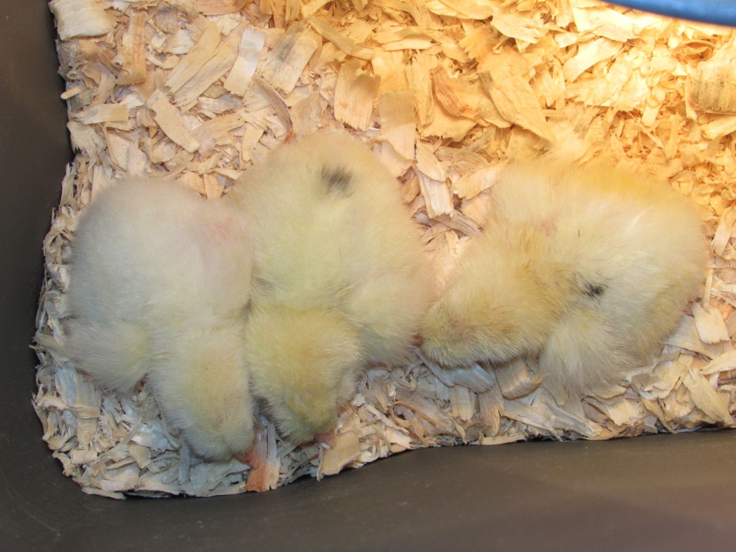 What do you think about these yellow ones? Their wing pin-feathers are white, so is it safe to say they the White Leghorn's offspring. The mothers are the same ones that are in my last post, along with three blues. Edited to add - or are these also from the wheaten male?