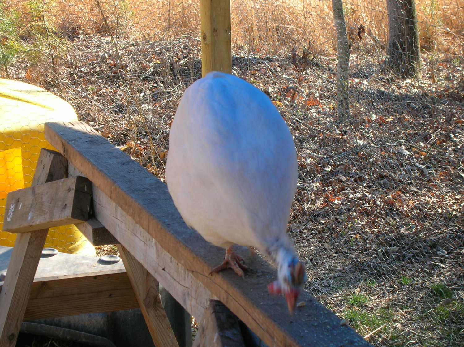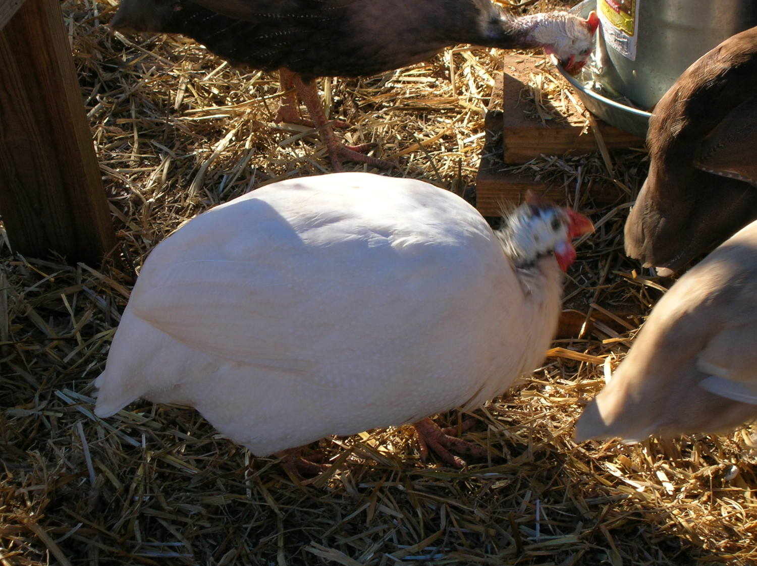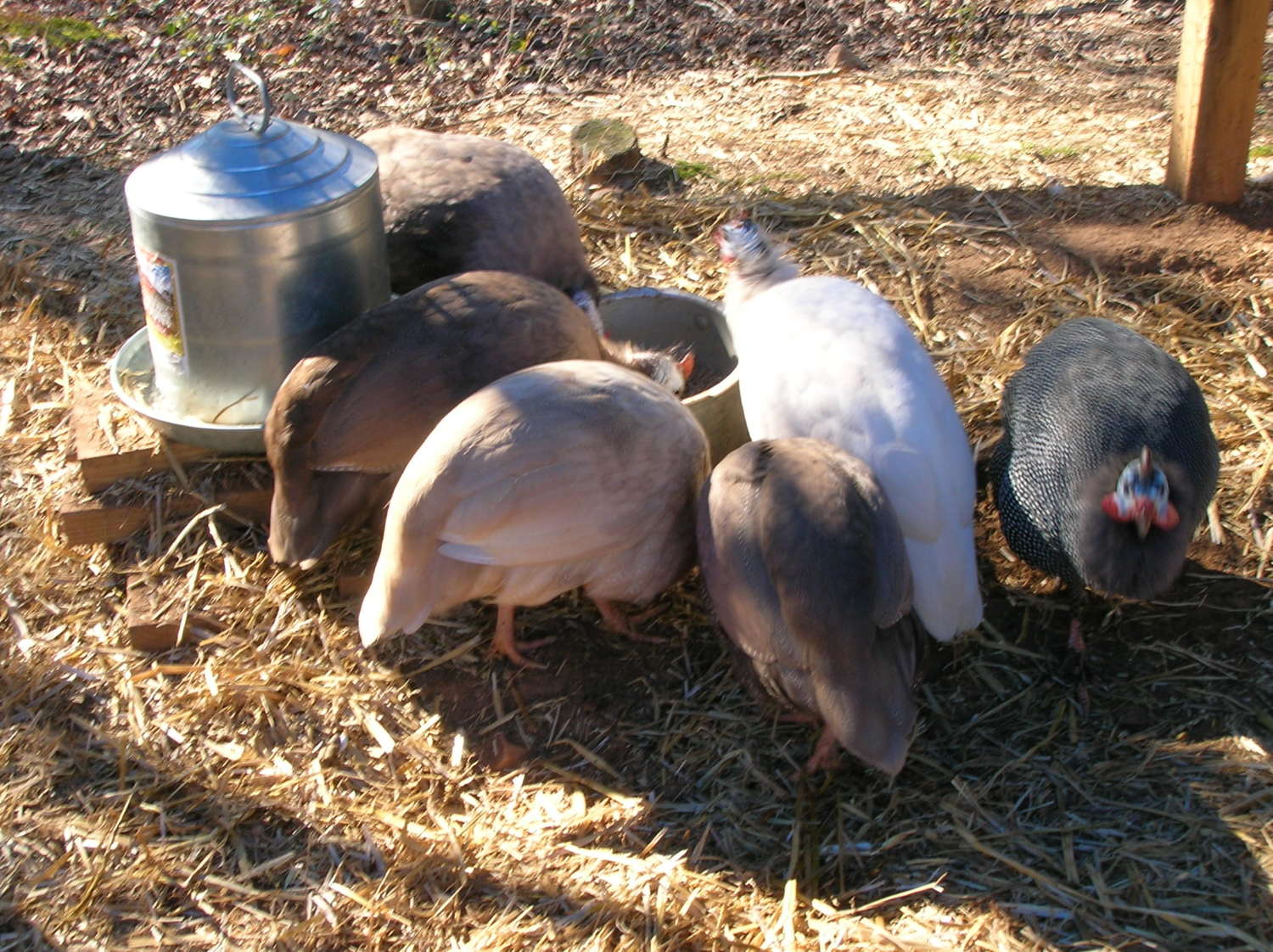 . Anyway, I'm putting up seven because it seems a lot of people (myself included) like to have a comparison from one color to another, and also to have them graciously ID'd by Peeps. My "White" isn't really a white due to his pearling, and I think he's a very light Buff, but I'm still not sure. So, here's my small flock. I hope it clarifies some of the "what's a Blonde, Buff and Chocolate" question.