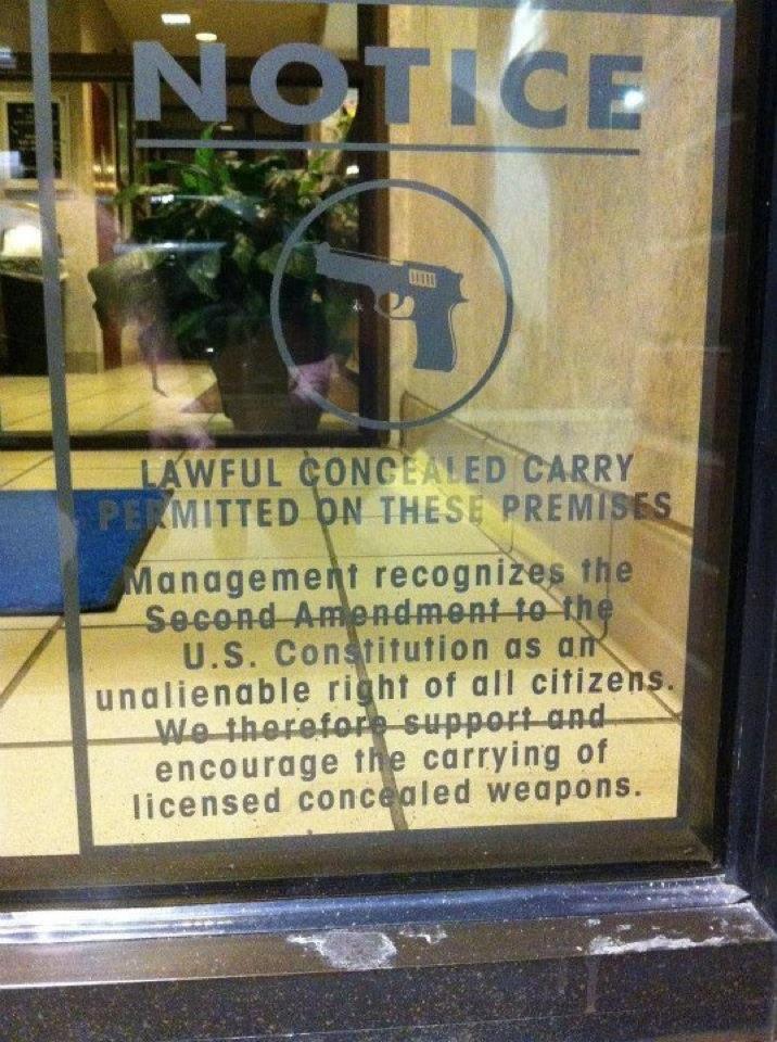 And if the business owner bans guns could he be sued ? Will the insurers cover the owner ? Maybe the insurer should pay a person carrying that stopped someone that was killing people ?