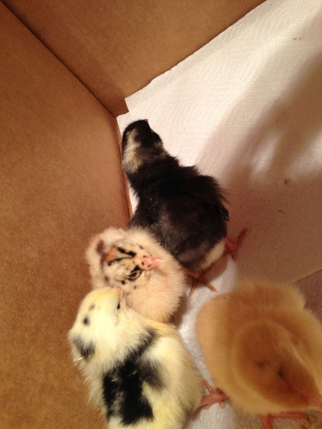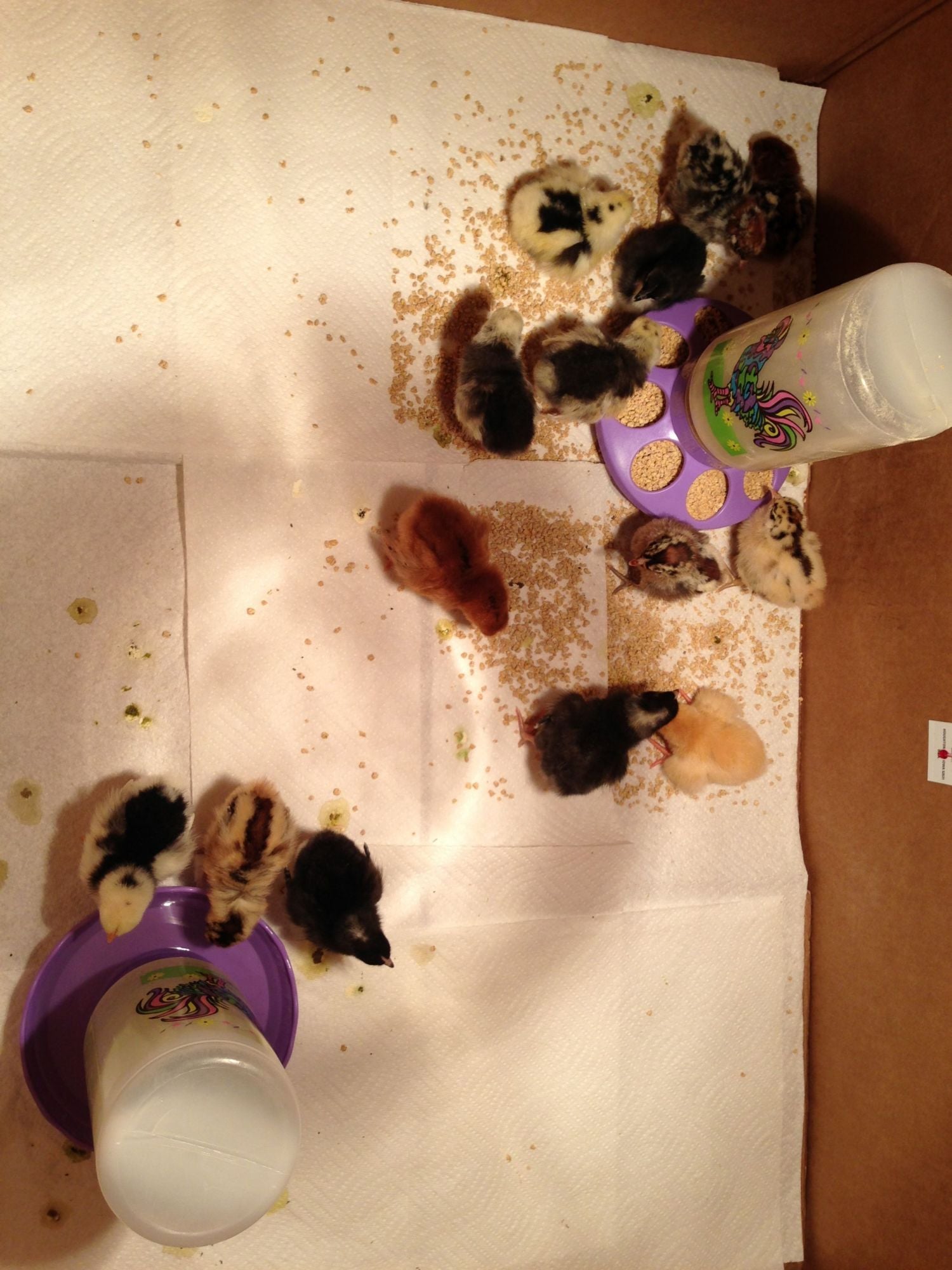 Sooooo cute!!!Happy Spring! I know it's still February and snow may be on the way but we have chicks in the brooder and I'm ready for Spring. Yesterday we bought three chicks from Kiowa Country Corner and eleven from Elizabeth Country Corner. I had forgotten just how small chickens start out. Things seem to be working out and the little chicks act very happy.