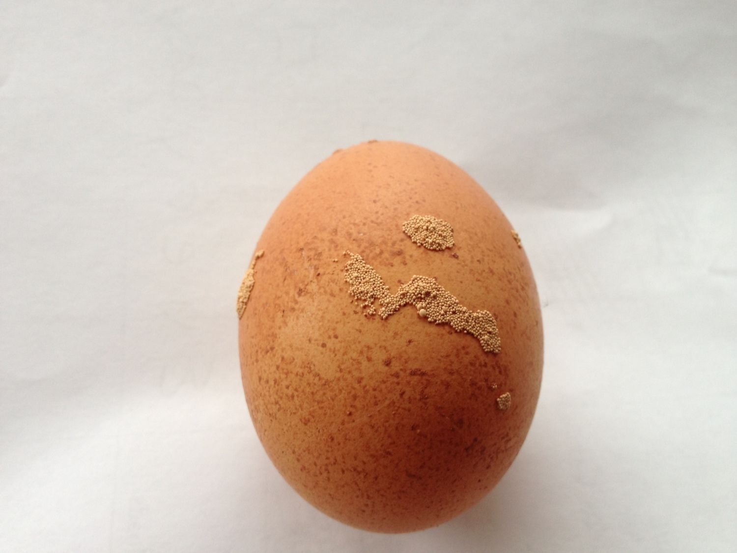 I have a hen that is laying eggs with some noduoles or protruding rough spots on them. Does anyone know what could be the cause? Here is a picture. Maybe too much calcium? I have been supplementing them with some oyster shells as I have one laying really thin egg shells.