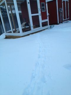One of the fun things about snow is that it shows you who is visiting your coop when you're not watching. I think my ladies got a visit from a raccoon today.