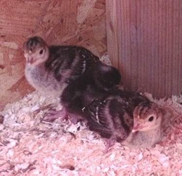 The new poults from pozees. Seems they already have a brood buddy.