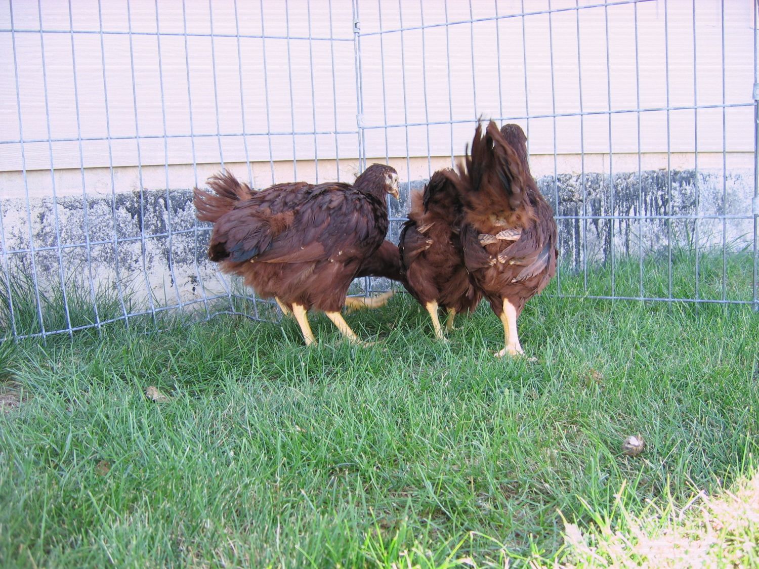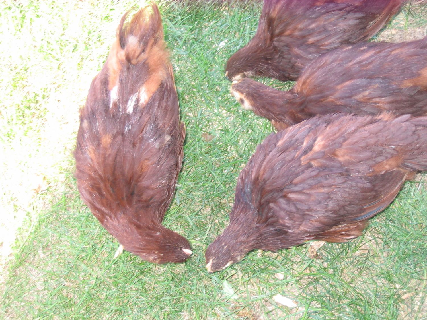 These first two shots I refer to as "Sky" shots and show the width of back. These are young birds so I expect more filling out, but if you notice the one in the middle of the three all together in this first picture, that is the one I believe is a cockerel, his back is the same width from shoulders to tail. That is very desirable.