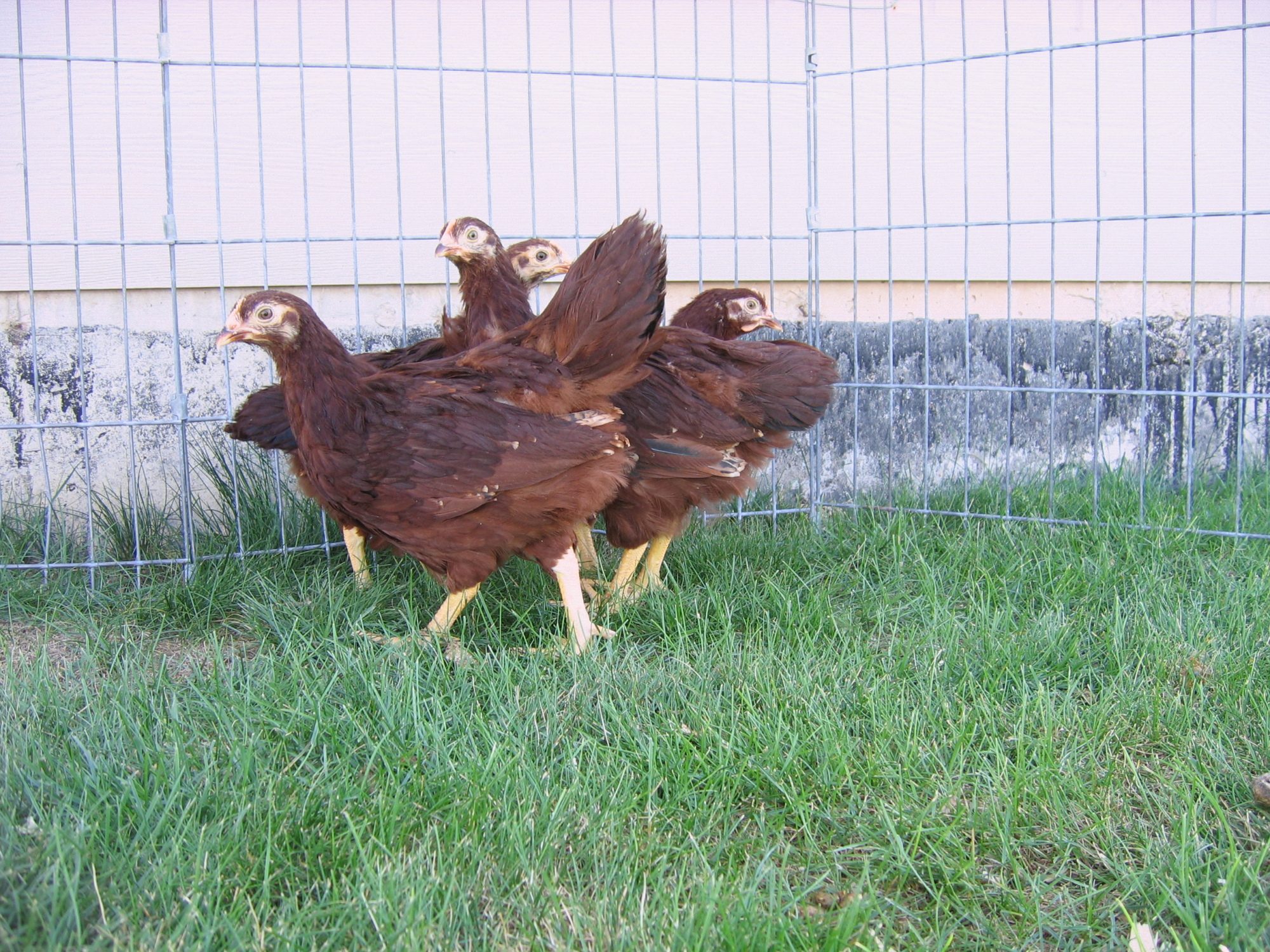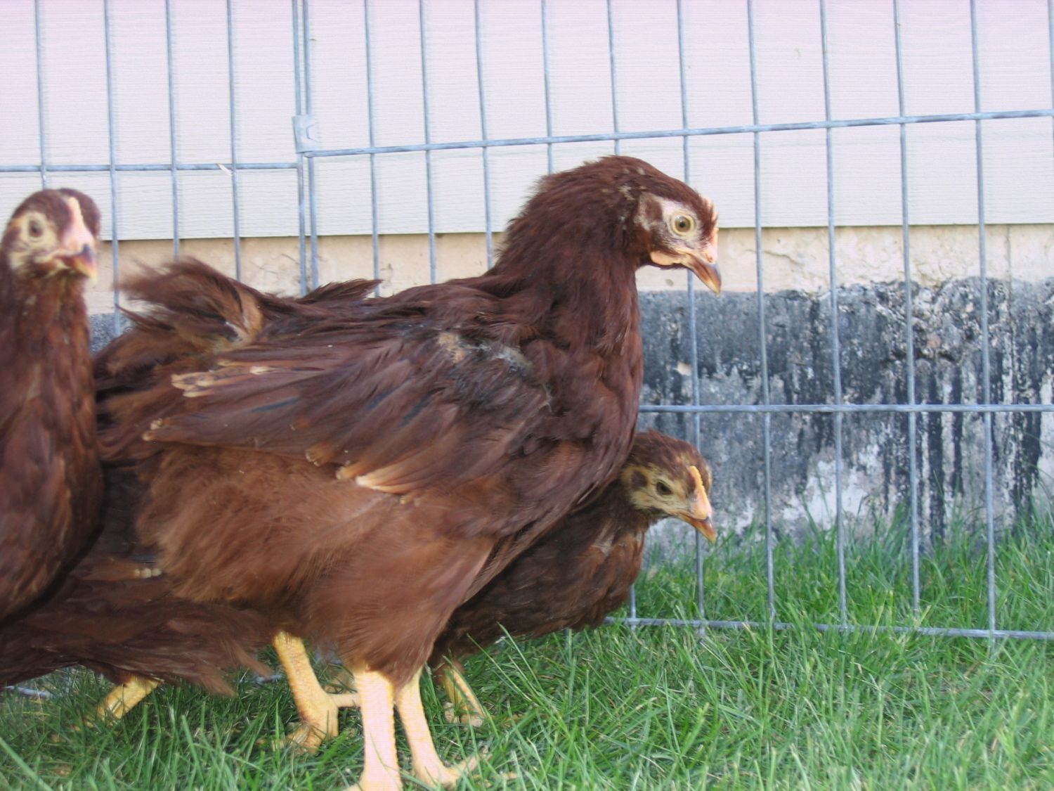 Greathorse chicks in the front, cockerel all the way in the back, can just see his head