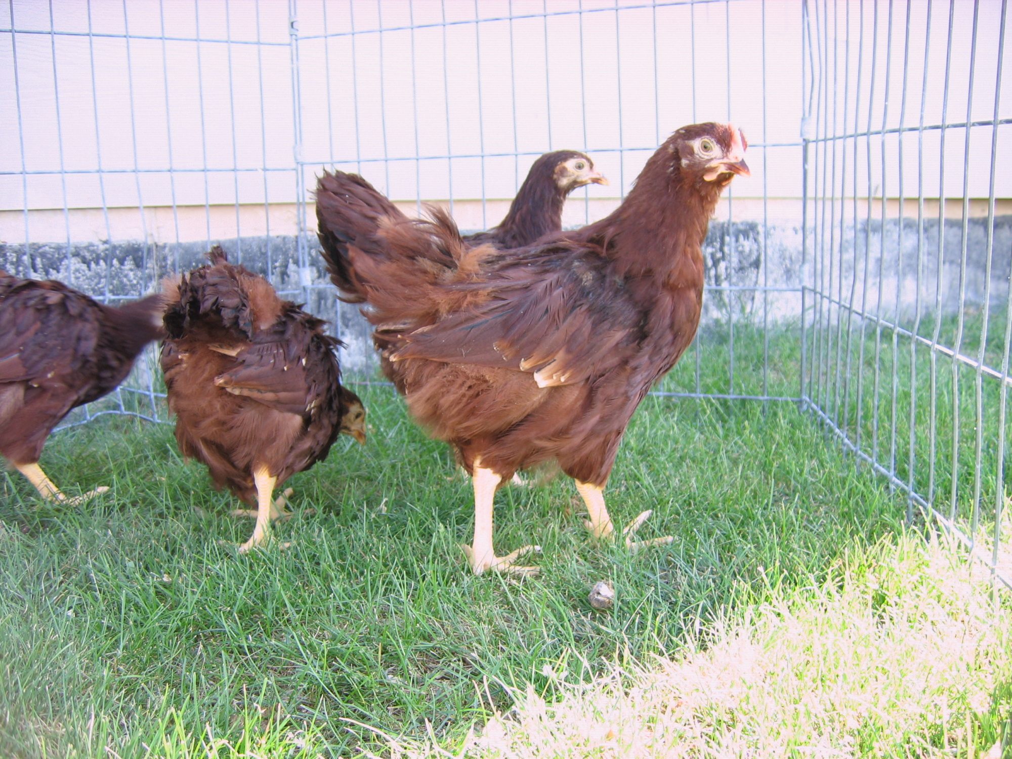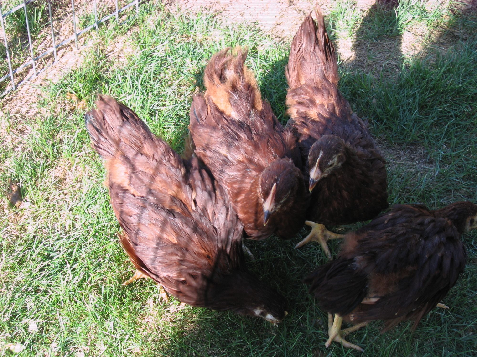 Took some more photos yesterday, these are of the 4 older RIR chicks. These hatched 3/29 and 3/30, and I think I have a cockerel and 3 pullets in this group. The one I'm pretty sure is a cockerel hatched from a Ron Fogle egg, and the 3 I think are pullets hatched from Greathorse (Paul) eggs, for those who follow the Heritage Rhode Island Red thread. Paul is here in CO. I just went to visit him this past Saturday and picked up more RIR eggs along with a dozen SLW eggs. His place and his birds are gorgeous, and he is a treat.