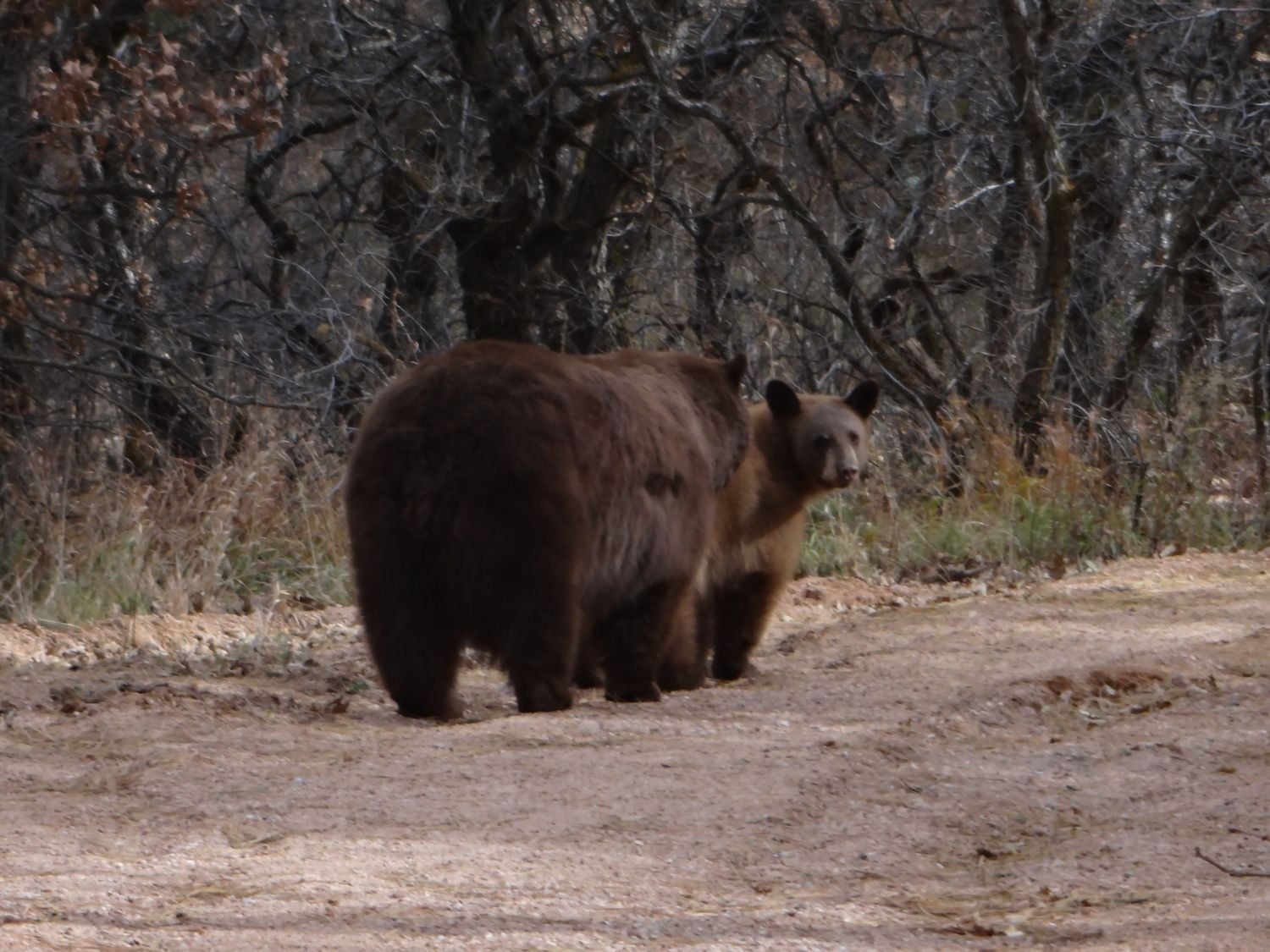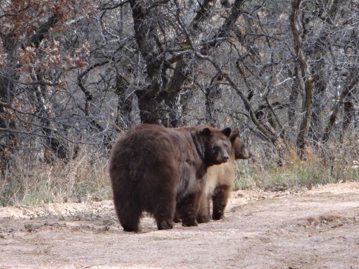 Those are some big bears. I've run across some hiking on Barr Trail in years past but they didn't look quite as filled out. Shortage of picnic baskets, I guess.Bears, bears, bears.... when will they go hibernate???