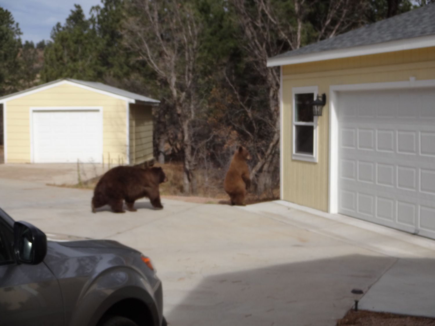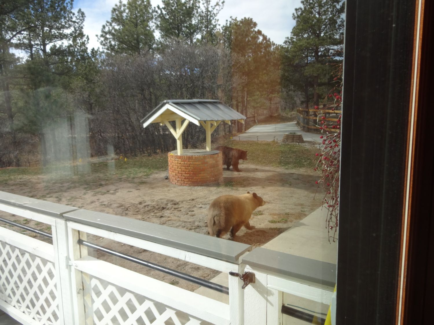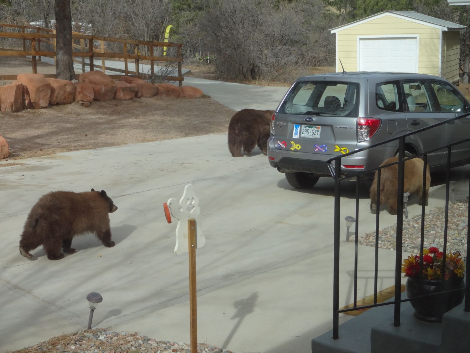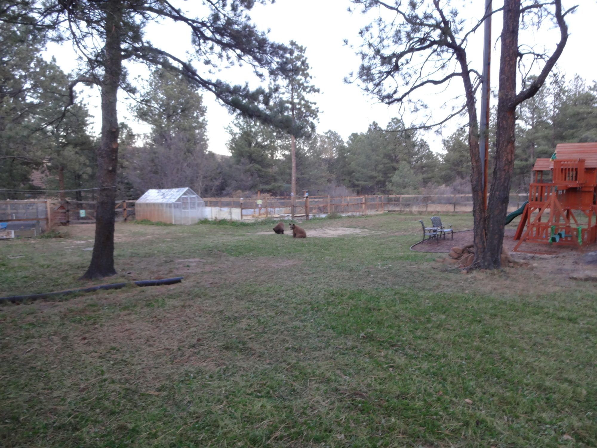 Friday morning I went for a long walk through my neighborhood. Came home and saw the bears around my house. I thought by now they were hibernating. Momma and 2 cubs.