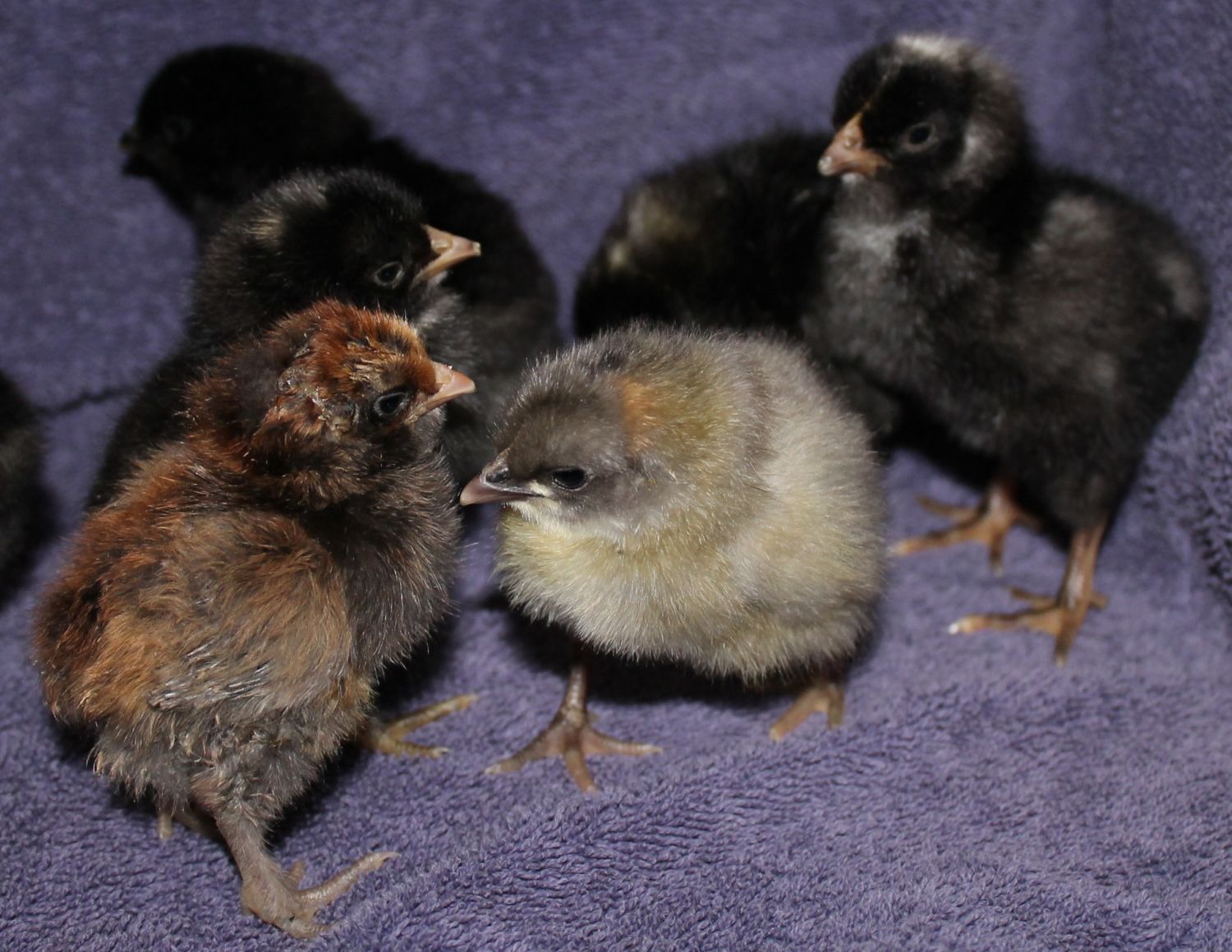 LOL Yes I know what you mean, the pale grey and tan chick to the left appears to be rumpless :) Hatched from a blue egg, so that combined with rumplessness means at least half Collonca.