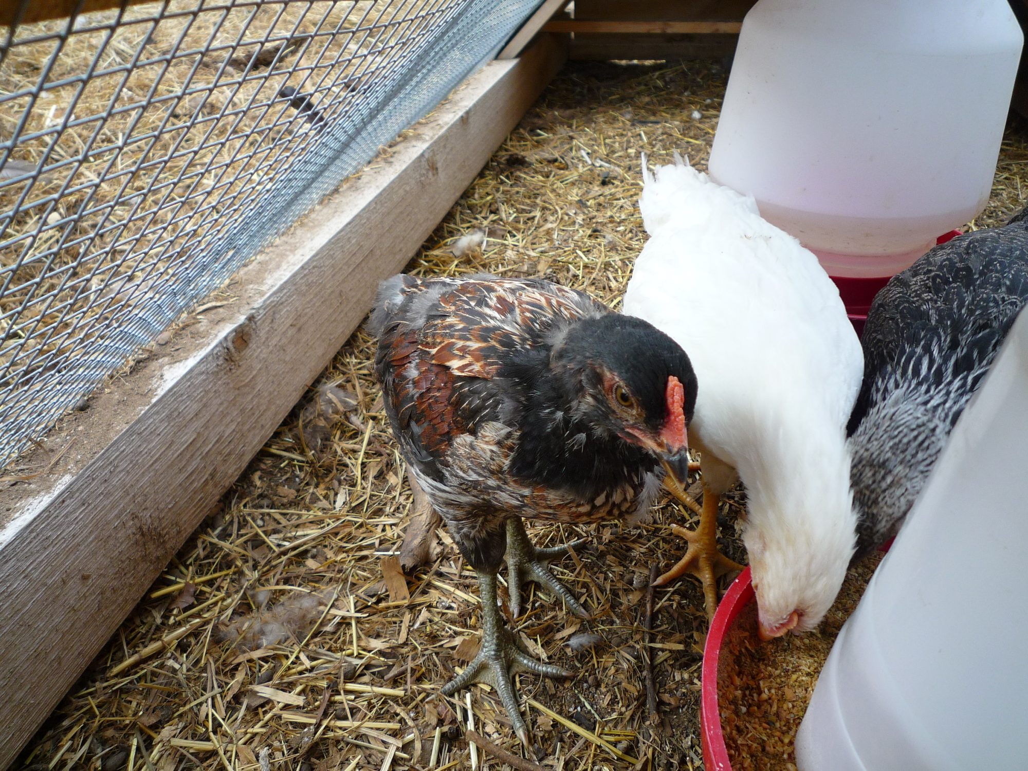 I simply let them out of their coop into their run and I sit on the straw bale and just offer the spoon to the birds, making sure everyone gets an equal amount. They eat it right out of the spoon and when it hardens quickly in the cold weather, I just flick little bits to them and they gobble it up!