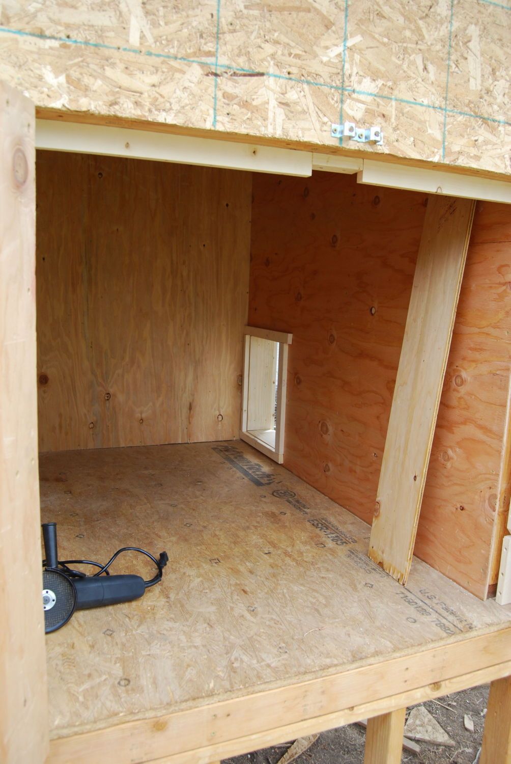 We aren't quite ready to put anyone in the coop yet, mostly b/c the coop isn't finished. It's about 60% finished and about 75% done enough to be usable by chickens. Plus, there are only 2 of the 8 who have a full compliment of primary feathers. That and the potential for snow for the next couple of weeks makes me think they might need to stay in the brooder a bit longer. Though I would LOVE to put them outside, tired of cleaning out the brooders each day! Here are some pics of the coop in progress.