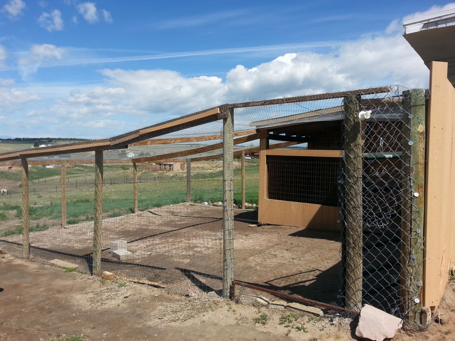 I think the same thing but I think DH is done with it. I think he wants to build a new one if (when) we need another. The new place has a pretty good setup as a start. This is the coop on the right is the roosts and nest boxes on the left is an enclosed area then this whole thing is in a large enclosed area. If we need to we can setup this area on the left as an additional coop for broodies/breeding/meaties/sick/injured/etc.