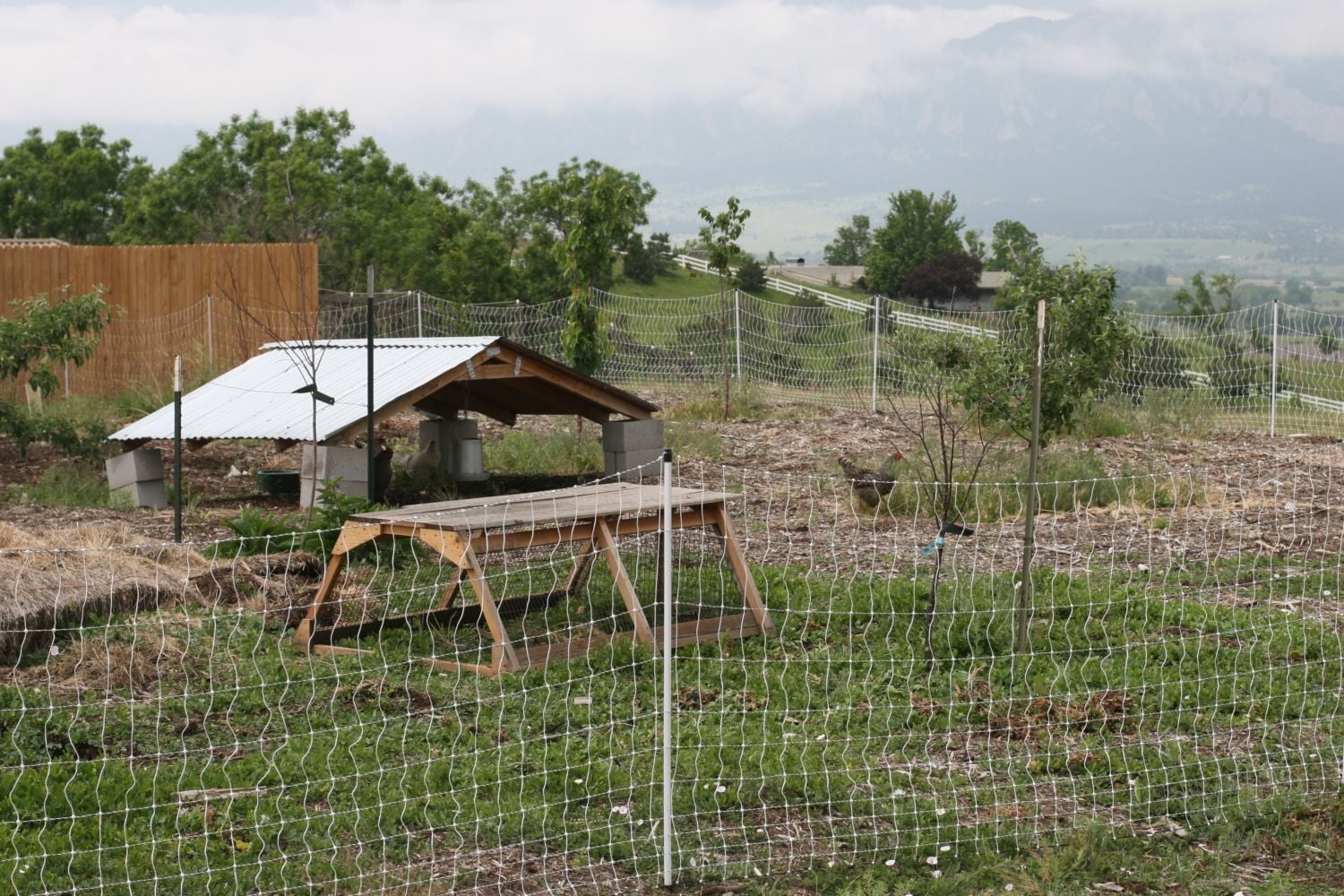 Excellent job! Between the tractor and the roof, if the roof structure would be used as sleeping quarters, you have room for 50 adult LF, assuming 4 square feet per bird interior. The grazing are you have fenced is 8000 square feet, and giving 10 feet per bird grazing you could theoretically range as many as 800 birds, but there wouldn't be enough room inside the structures.