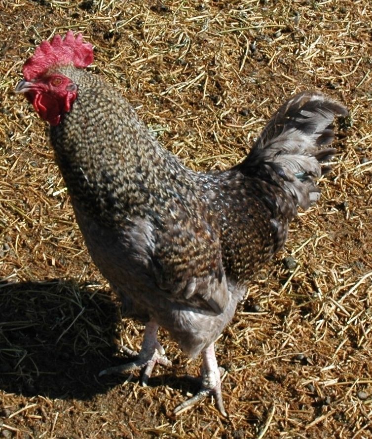 Quote: I thought you said she was mottled. If Carter is a pure breed then our split lemon Cuckoo Maransrooster must have fertilized that egg! Congrats on such a pretty well behaved boy!! I have had a few colored like Dinner,one was ver,y very smart, no pen could hold him!