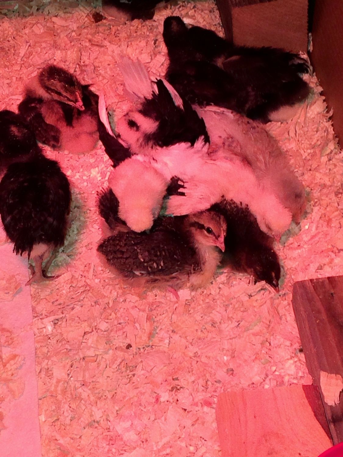 Just had to share a pic of my silly little polish. They like to climb on top of the other big chicks and fall asleep that way. The one spreads her little wings out and 'hugs' the others.