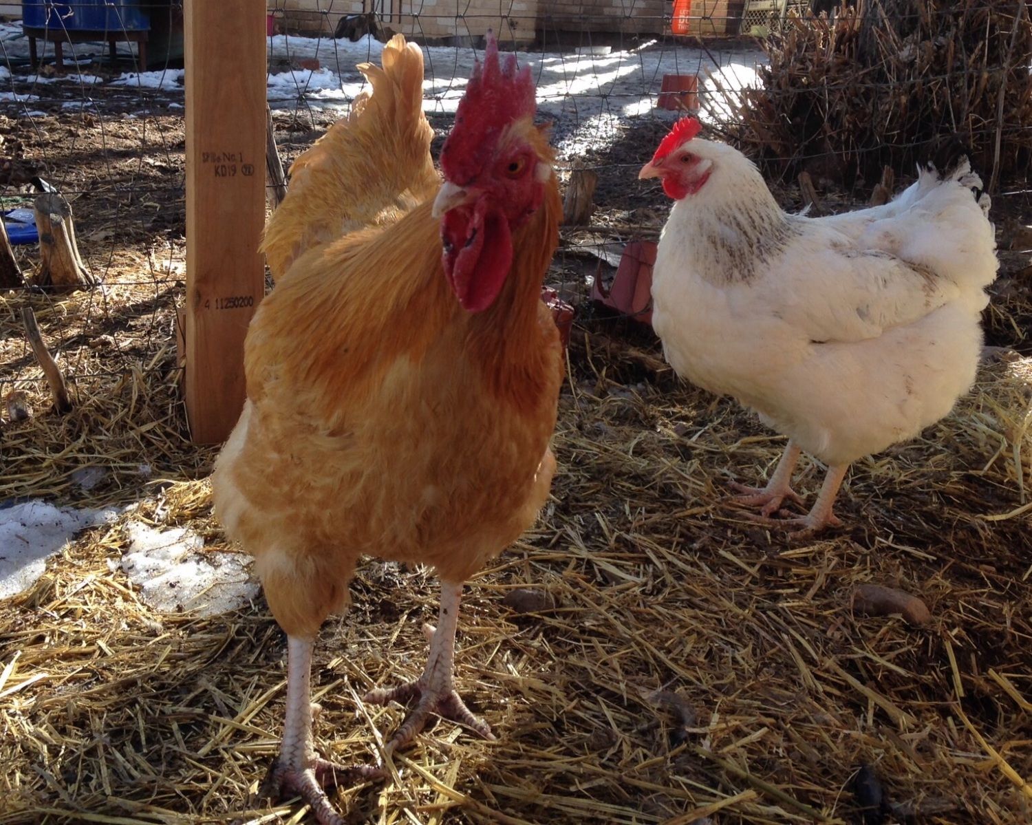 Wanted to post a couple of shots of Rocco post frostbite and the fight between he and Bruno. He is recovering nicely and has put some weight. His comb points are undoubtedly less pointy now.
