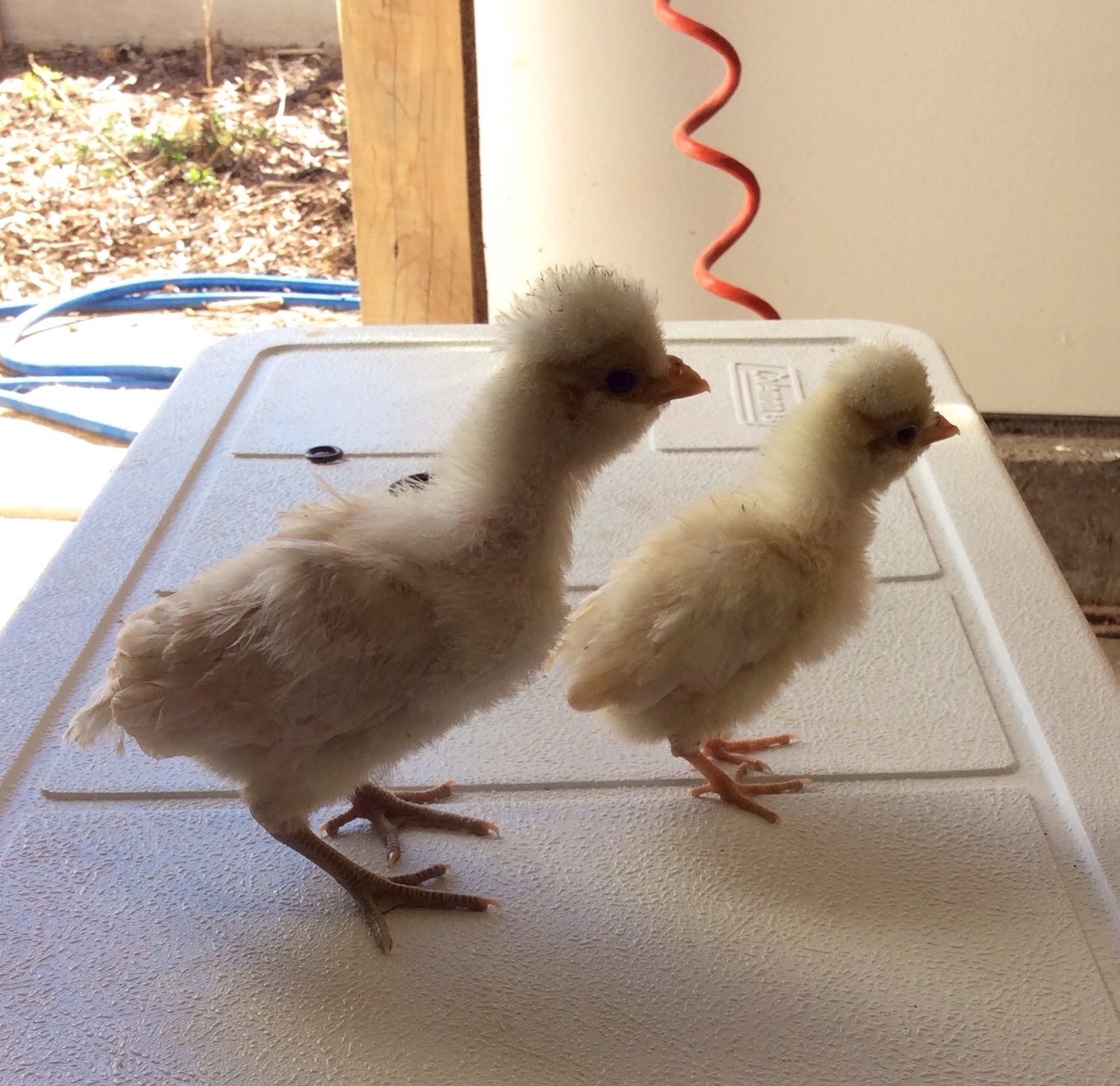 My little Iowa's are very small still. Even smaller than the polish. One of mine has huge wing feathers. Like seriously huge. I sure hope both of mine are girls. Not as freaked out by my opening the brooder as some of the others though.