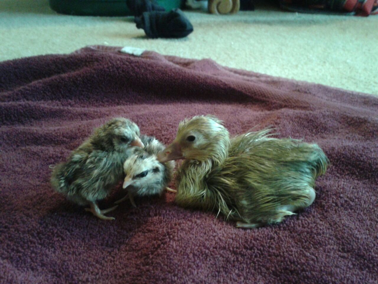 I have 36 /4 week-old chicks in one brooder....8 new hatches (1 week old) in another brooder...and we will get 15 more on April 30th!!