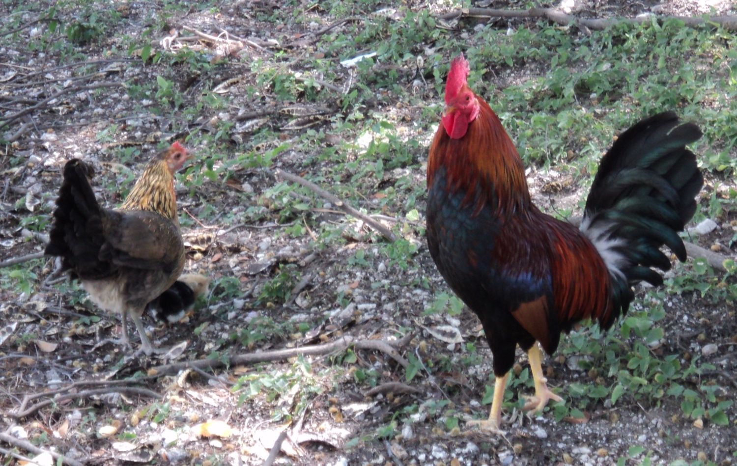 We went on a trip to Key West recently. On my bucket list was seeing Key West chickens. The boat pulled to the dock & I hear roosters crowing, on the wharf!!! HOw neat! We saw several roos & hens with chicks. I asked the driver of the moped rental shop, what do people think of the chickens? He said its fairly strong feelings either way. Some love em, some hate em. He said he was more in favor of the chickens when finding out the scorpions are highly predated upon by the chickens. YAY!! Go chickens!