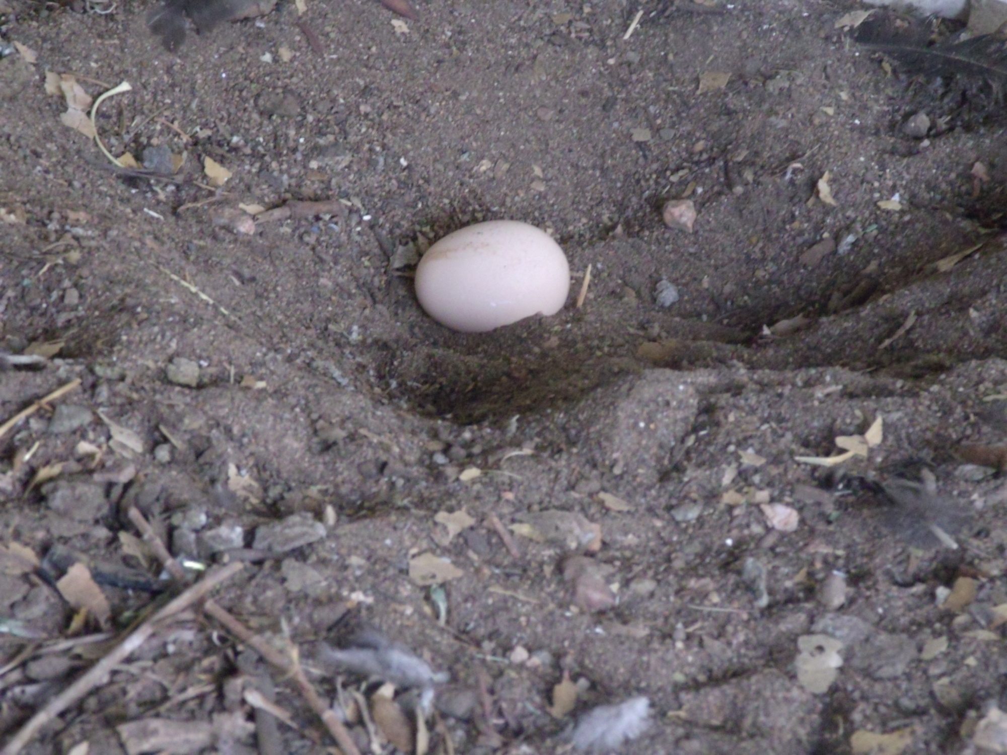 Well, I had a busy day. Went out to setup the coop and run separation for the arrival of 4 new pullets (tapping fingers, waiting, waiting). But there's a Barred Rock in the nesting box, so I quietly exit and wait for the new arrival. Pullet gets off the nest, excitedly does a little egg song, then leaves. Oh goody! I go peek in nest, it looks empty. I stick hand in just in case and lo and behold there's this nice round thing there. I pull it out to find the pullet had pulled one of the golf balls in. No egg. Resignedly I go out of the run to get the stakes and chicken wire to separate the coop. I head back in...........and there's the OTHER Barred Rock in the nest. So I spent from about 7 am til about noon watching the 2 barred rocks take turns sitting on the nest fr 30-40 minutes each time. One goes in, stays, leaves, the other goes in, stays leaves, but never an egg.