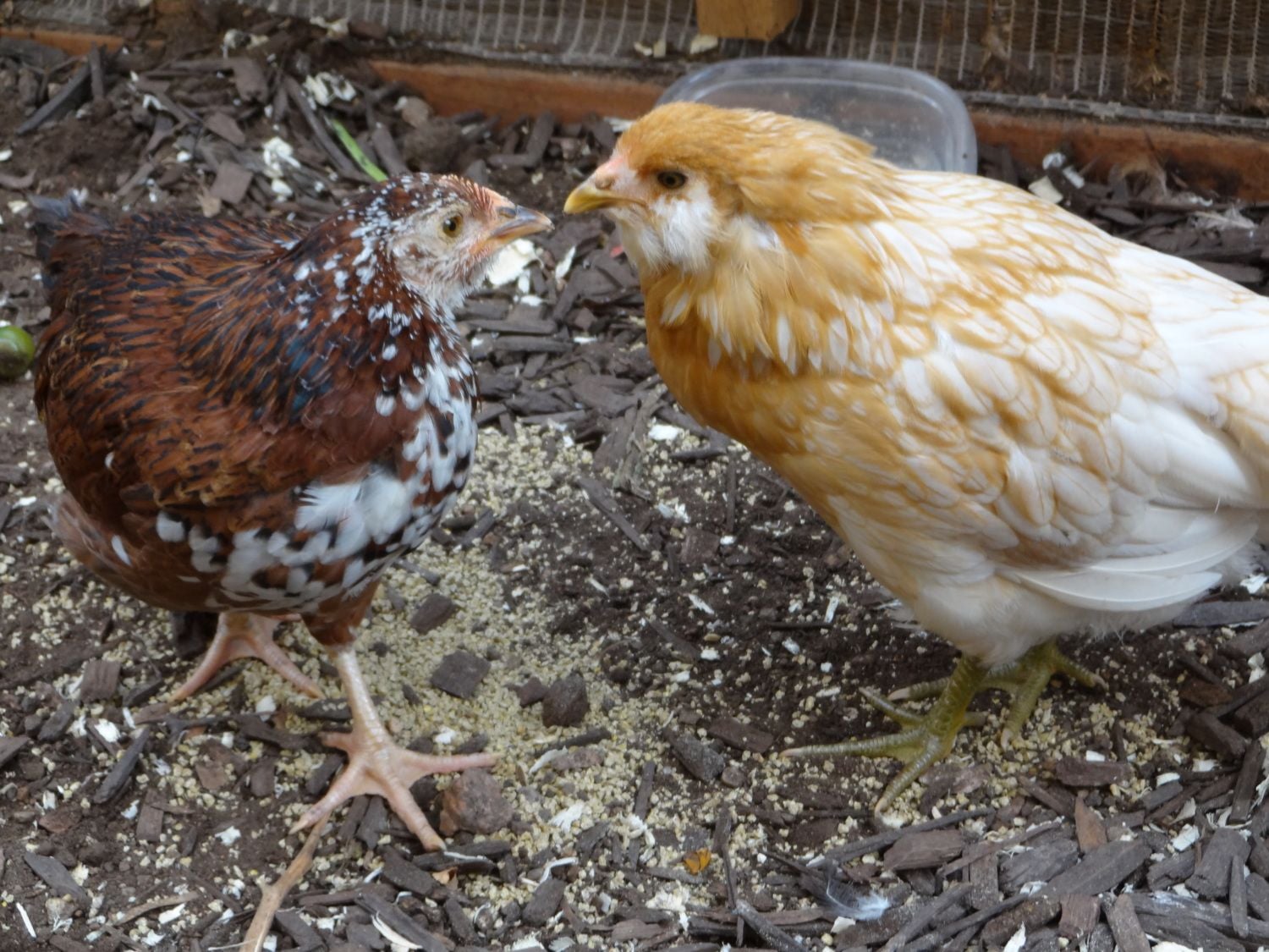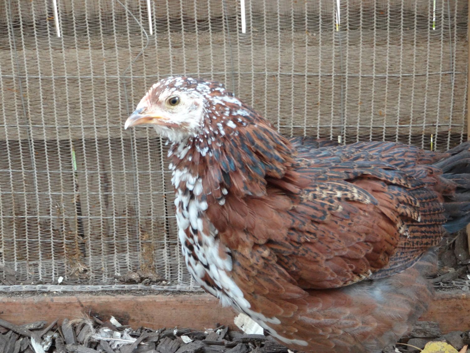 2 weeks ago I got 4 new chickies! They are now 10 weeks old and half the size of my 3 big girls. I have them separated and they are getting friendlier every day.