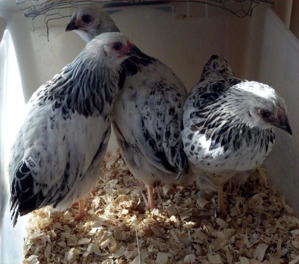 I'm assuming the trio is about 8-9 weeks old since the cockerel has no swelling yet in his comb or length in his wattles.