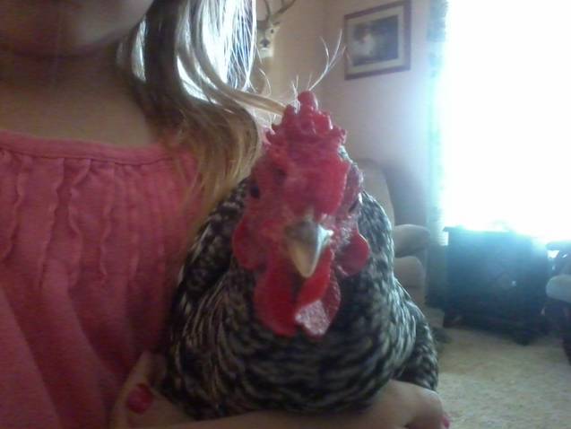 Hi, I'm Dee (chic_a_lay)....I'm new here, but, I'm going to give this a try anyway. This is a photo of my rose-combed, very talented, dominique rooster. He's one year old this week, he has 27 hens to keep in line and he certainly rules his roost! Mr. Tom T. Dominekker