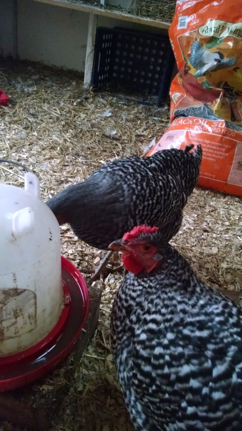 The one whose comb has shrunk on the left and the one whose comb is still red and big on the right->
