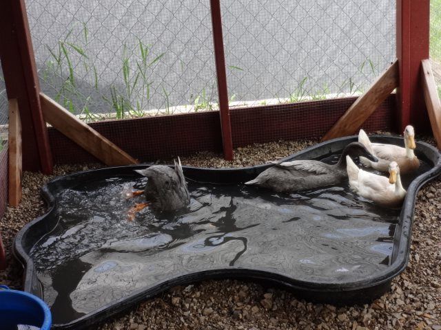 After cleaning the run and emptying/refilling their pond, I allowed all 4 ducks to go inside the run. They did great. No issues at all. They shared their food, water, and pond! So happy they figured out the pecking order without much trouble and no blood!