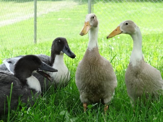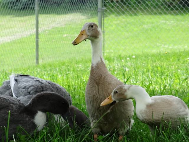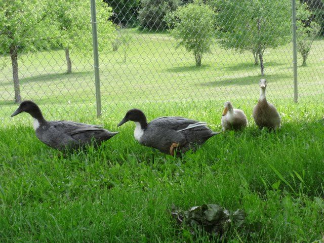 After letting the runners grow up, we slowly started introducing the pairs to each other. They were able to free range together under supervision. The older girls weren't too thrilled about it and did some chasing and pulling of feathers.