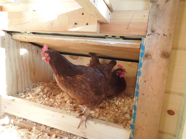 Since creating my externally mounted community nest box posted on 11/13, I have created an interior divided box as well. I had put a corner grain bin up near the circulating heated water (nipple in pipe system) with a loop in the bin and shavings on top. Hoping to keep eggs from freezing *. A couple of girls seemed to prefer that to the dark community and when the nipples on the exposed pipe started freezing in < 10F temp, I made a radiant floor 3 nest divided open box which also enclosed the pipe in rigid insulation. Same girls that liked the bin like the divided boxes. Others are using it as well. Some still go to the community. To each their own I guess