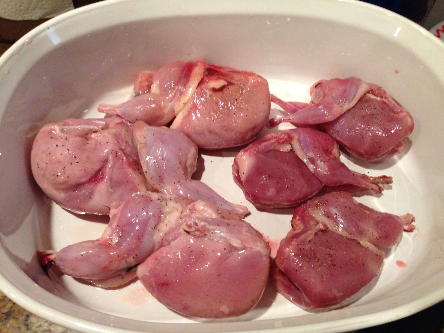 Three JMF fresh processed adults on left then I thawed out a package of my frozen "mixed coturnix" and placed three on the right. Look at the difference