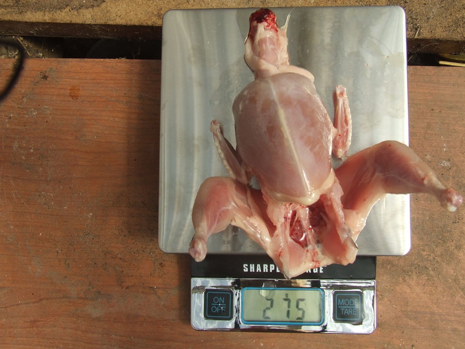 I have been checking back on this thread often. I didn't do any sort of reliable weighing of my first set of jumbos (from ebay). Second set (different ebay source) are averaging 55g at 13 days. First set was selected for size so I'll be hatching out F1s from them in a week. The largest were weighing in around 11oz in the 3 month range.