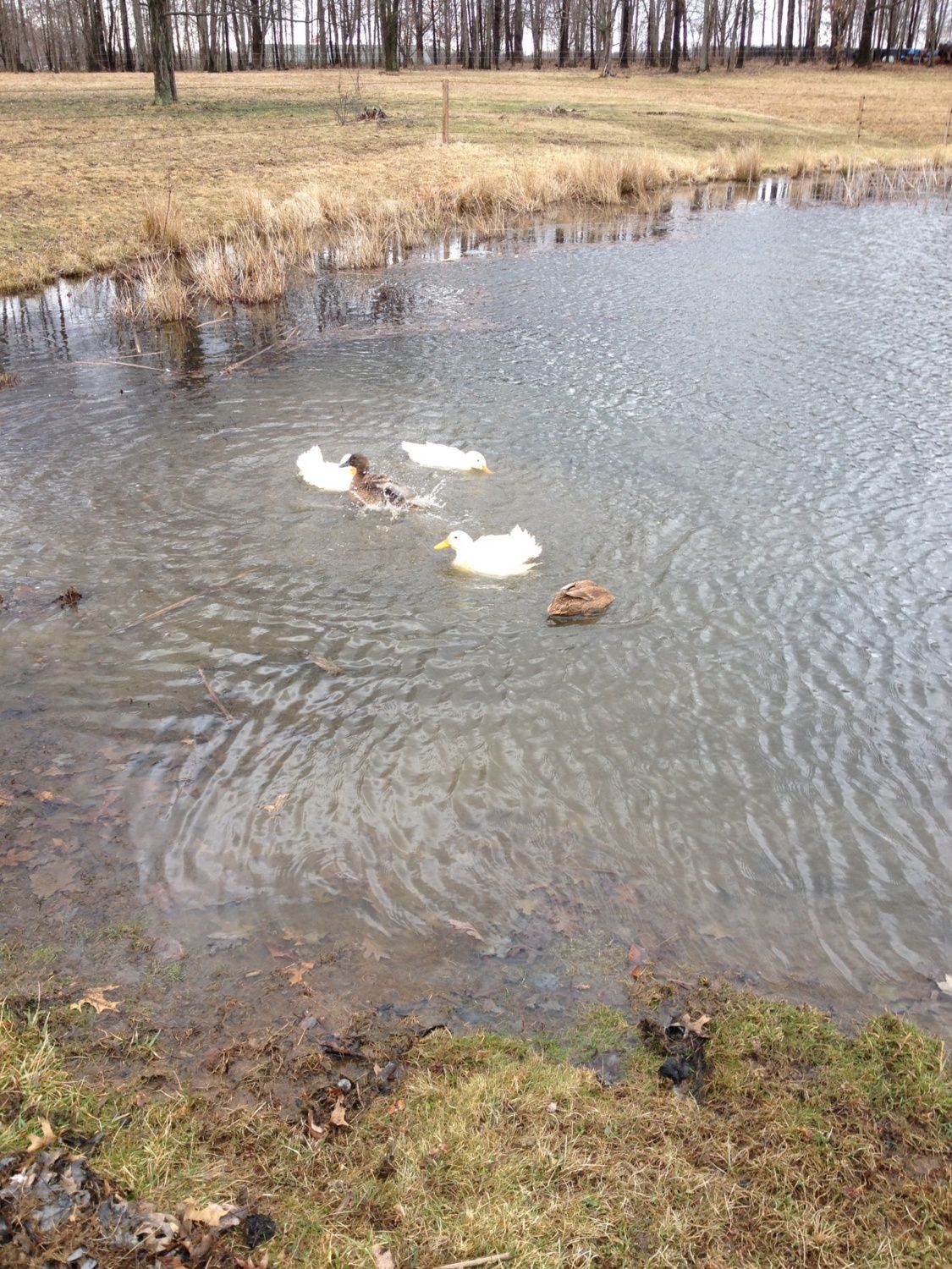 Must have been too cold for the ducks today. They went out hit the water then right back to their pen lol. In just a week they are looking better and walking better. So that's good