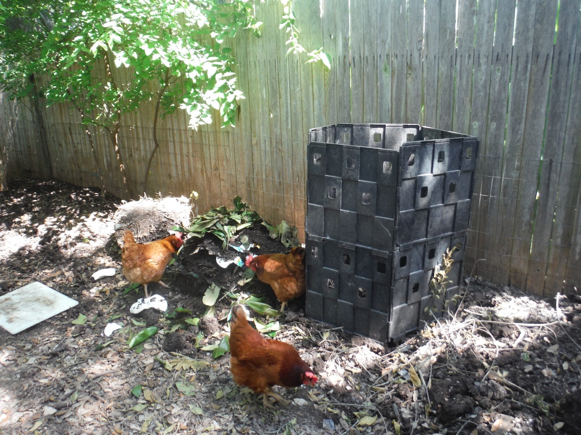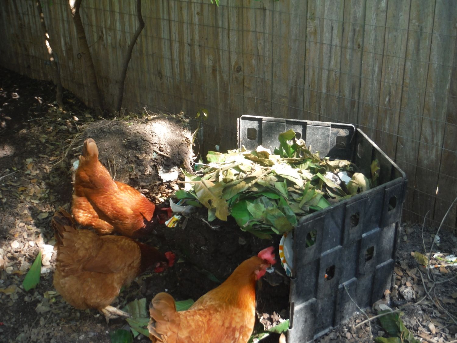 The (3) Chickens really do enjoy the scratching in the above area as there is an abundance of earthworms & other insects for them to consume.