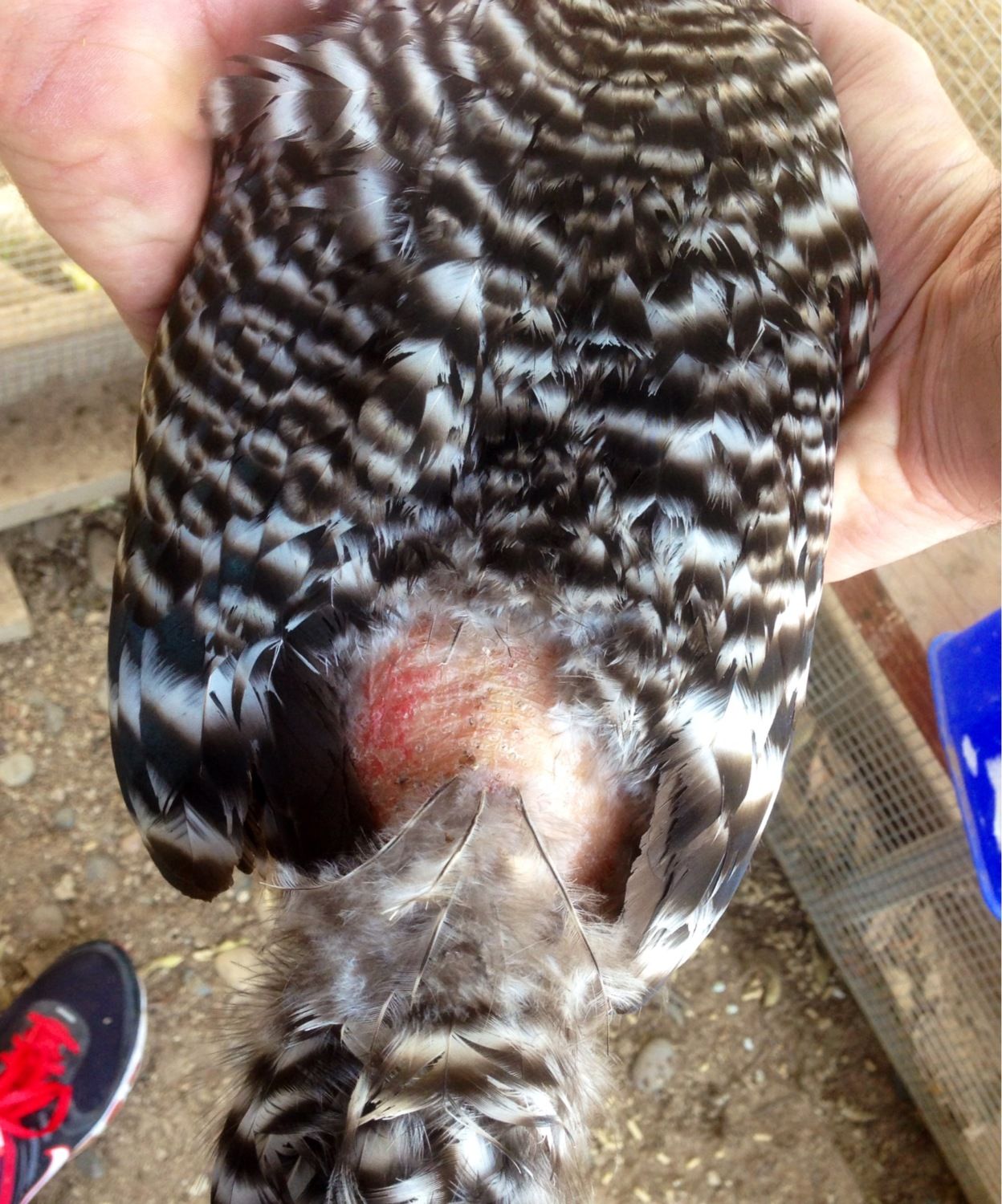 A couple of months ago I started seeing that one of my five chickens (a Dominique) started loosing feathers in her bottom and that the feathers around her tail were becoming kind of fussy. I started a thread here and several people said to check for mites (haven't seen any) and otherwise it could be just regular shedding. Since this is my first time with chickens (all of them are about 10 months old, raised them from 1 week old chicks), I am concerned that it is something more serious. My other 4 chickens (2 Ameracaunas and 2 Plymouth Rocks) are heavier than this one. Although I haven't seen any problems with the Dominique in terms of eating or drinking water. Any suggestions based on the attached photos?