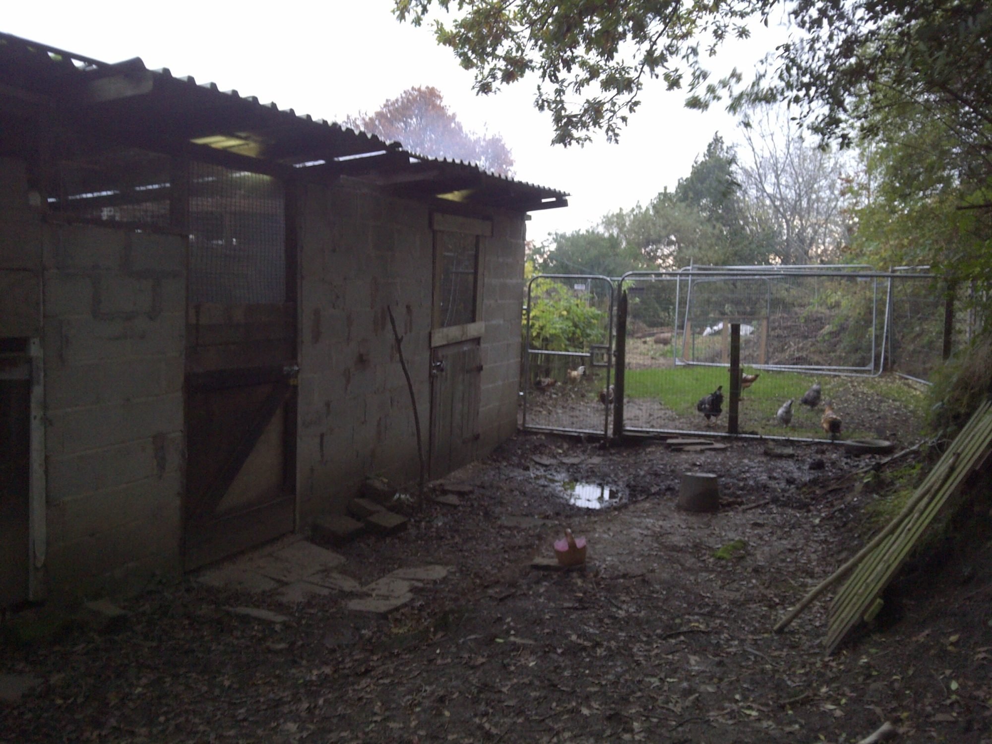 There is 35sqft of ventilation in total, in a building that is 7.5ft tall. If I put 12 chickens in a gymnasium, I wouldn't expect there to be condensation next morning because there isn't exactly 12sqft of ventilation. I realise this isn't quite a gymnasium, but it's much bigger than most people's coops. Certainly bigger than any over here, where they recommend 1sqft per bird and have a tiny slit for ventilation...