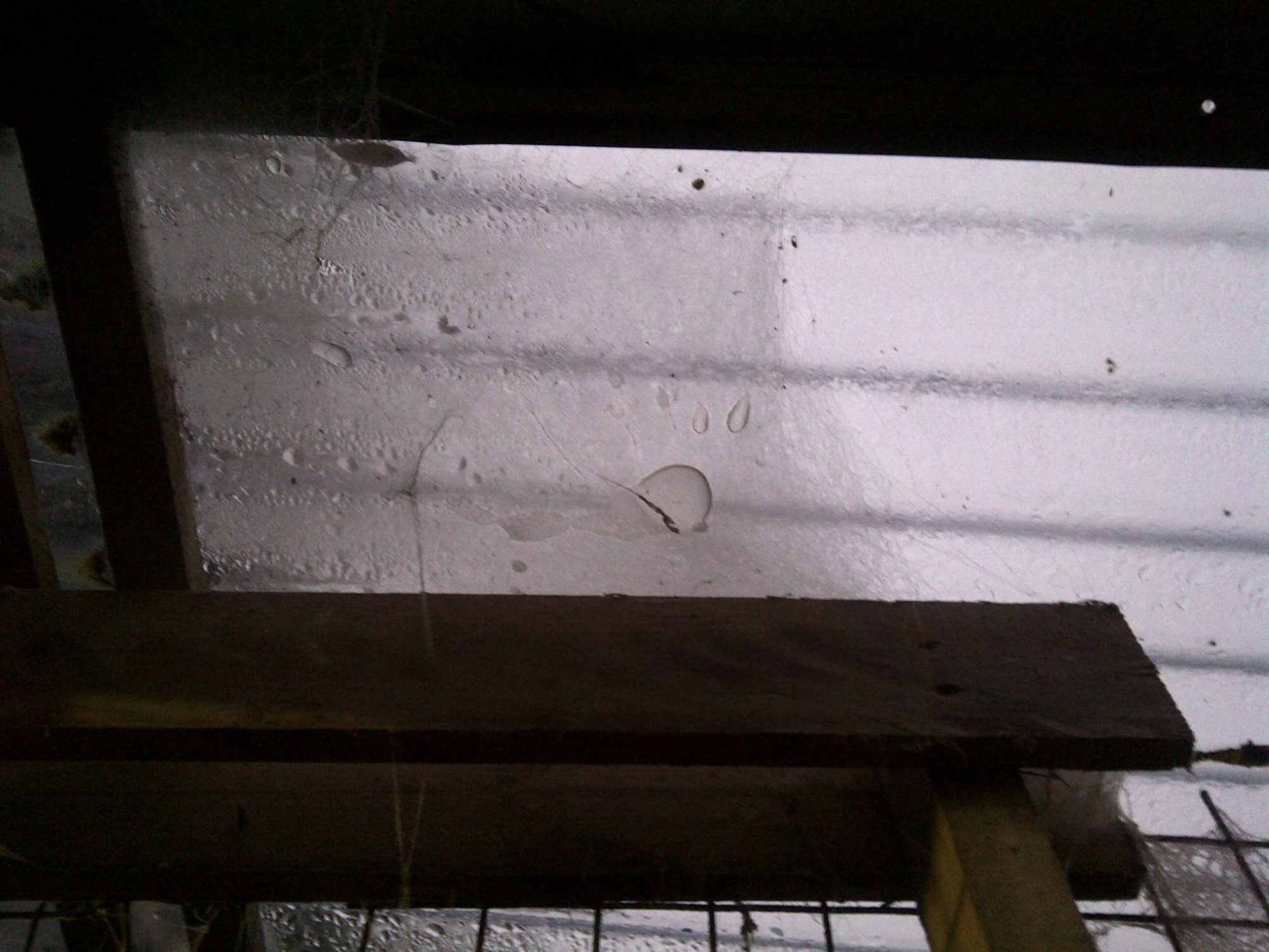 It has actually gotten much better. I haven't seen any more drips and the ceiling doesn't seem as wet. I'm giving it another week to settle some more and then I'll change the bedding. I'd like it to settle as I'd like to keep the trees low. There is much more light coming in through the soffits (let me know if I'm not using the word correctly here) now.