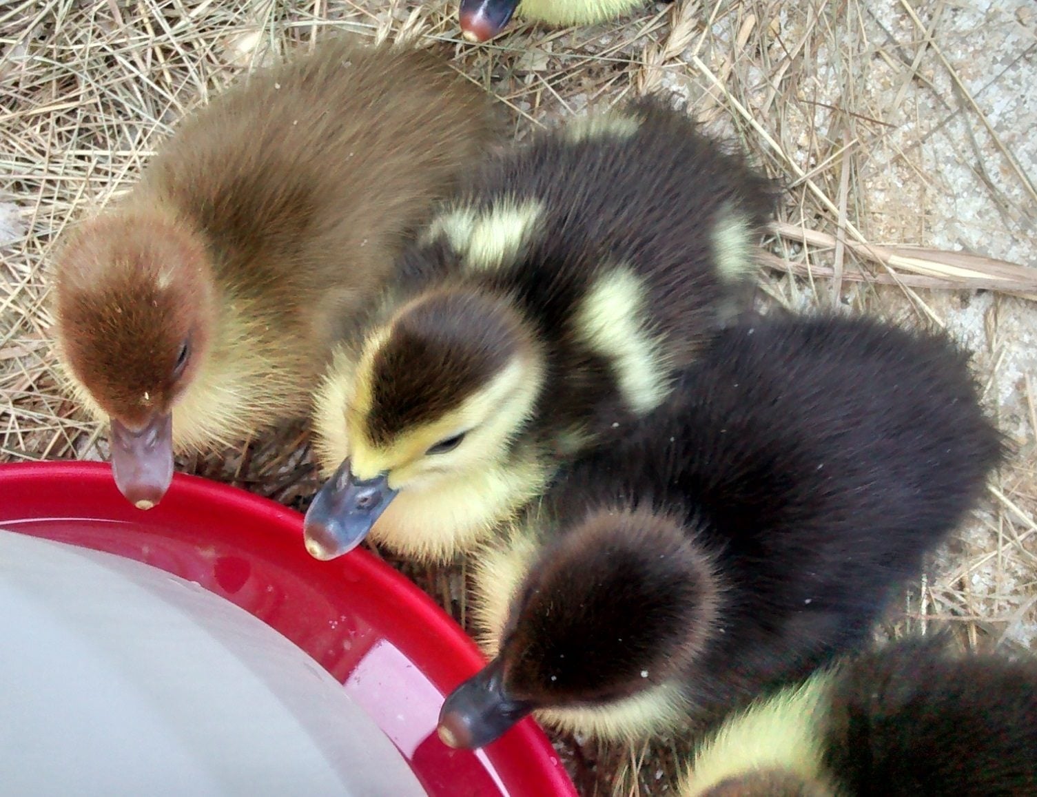 There were 3 brown babies but 1 died first night, two black spotted ducklings and the rest normal black babies.