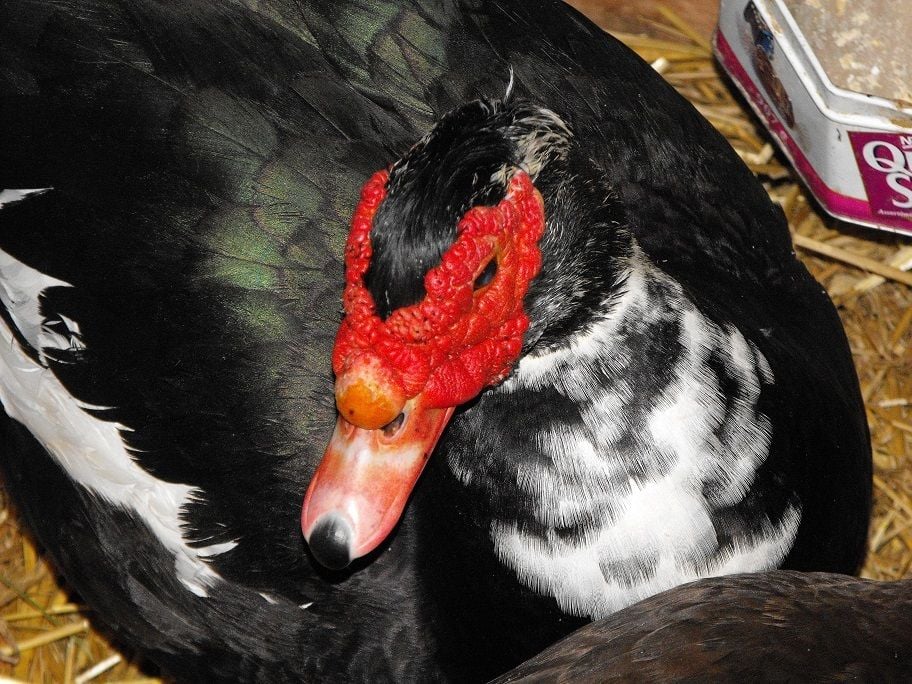 Here's are the two duck parents that laid egg in this clutch of 10 babies. The drake below. Ignore other ducks in the pictures they were gone last winter. No other possible parents than the muscovies,